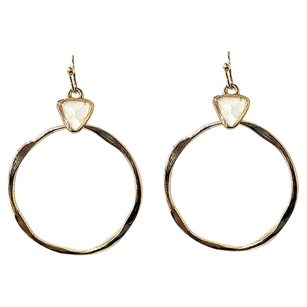 OVAL PEARL BEAD METAL RING EDGE EARRING