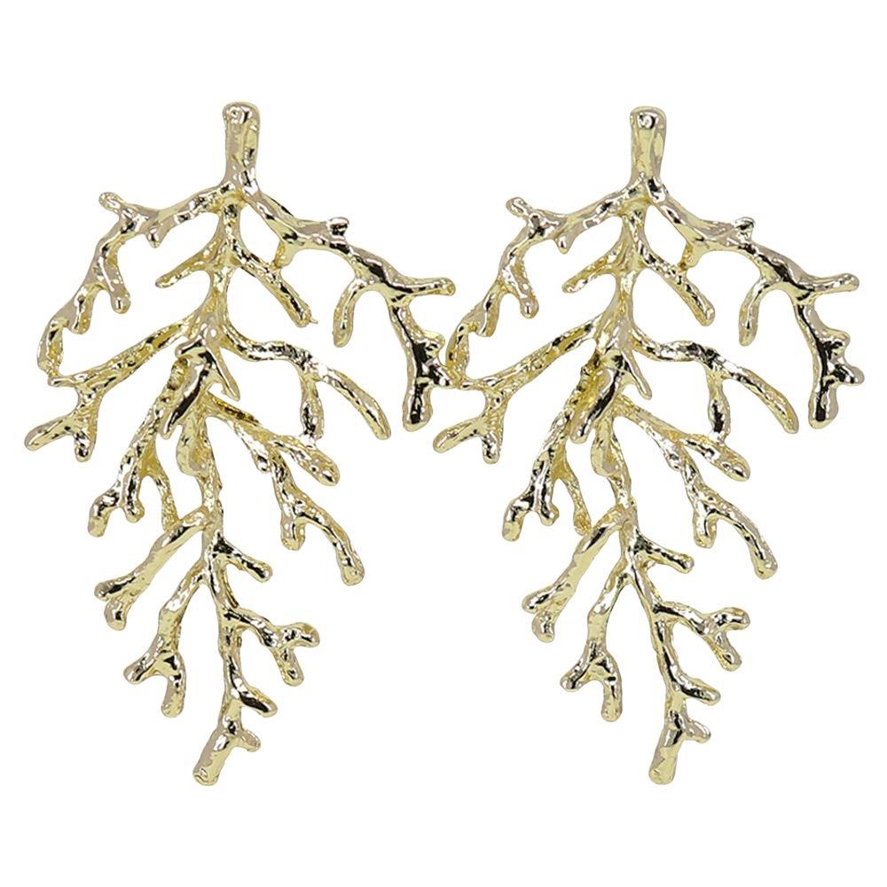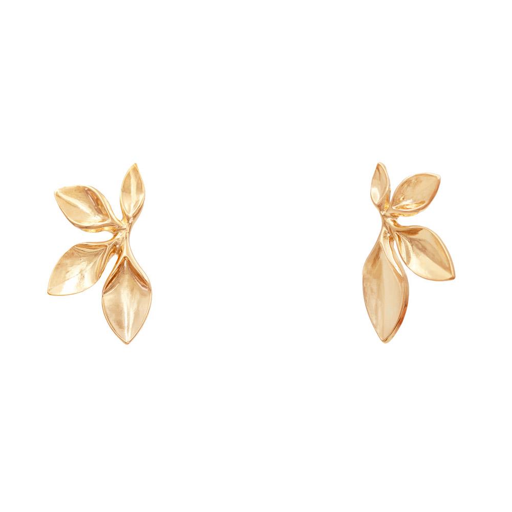 STAINLESS HALF LEAVES STUD METAL EARRING