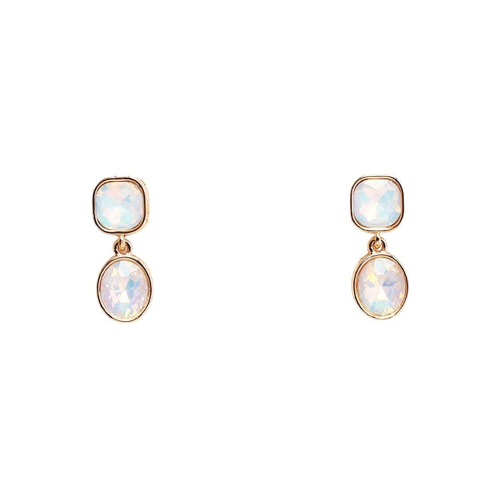 RECTANGLE GLASS STONE W/RING STUD EARRING