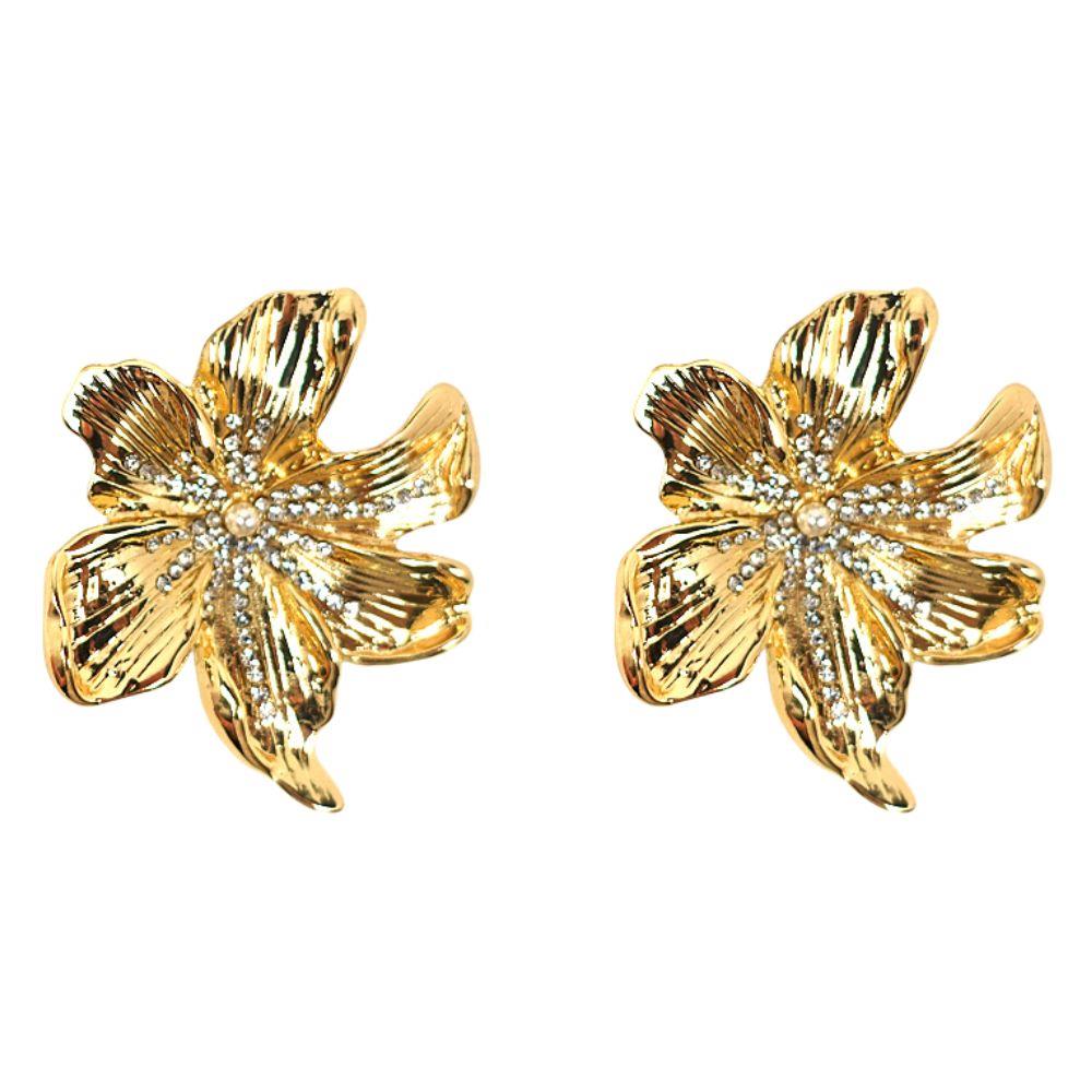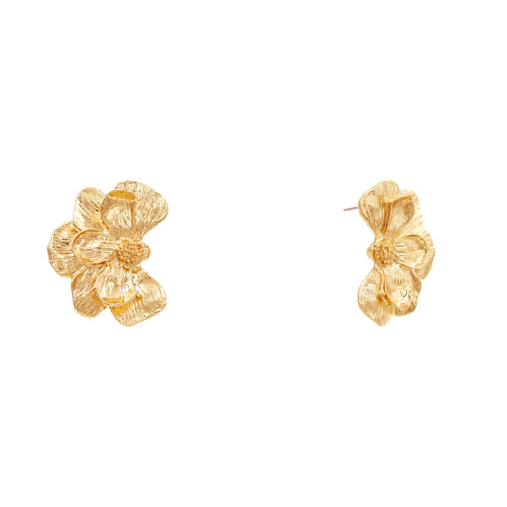 TEXTURED METAL FLOWER STATEMENT EARRING