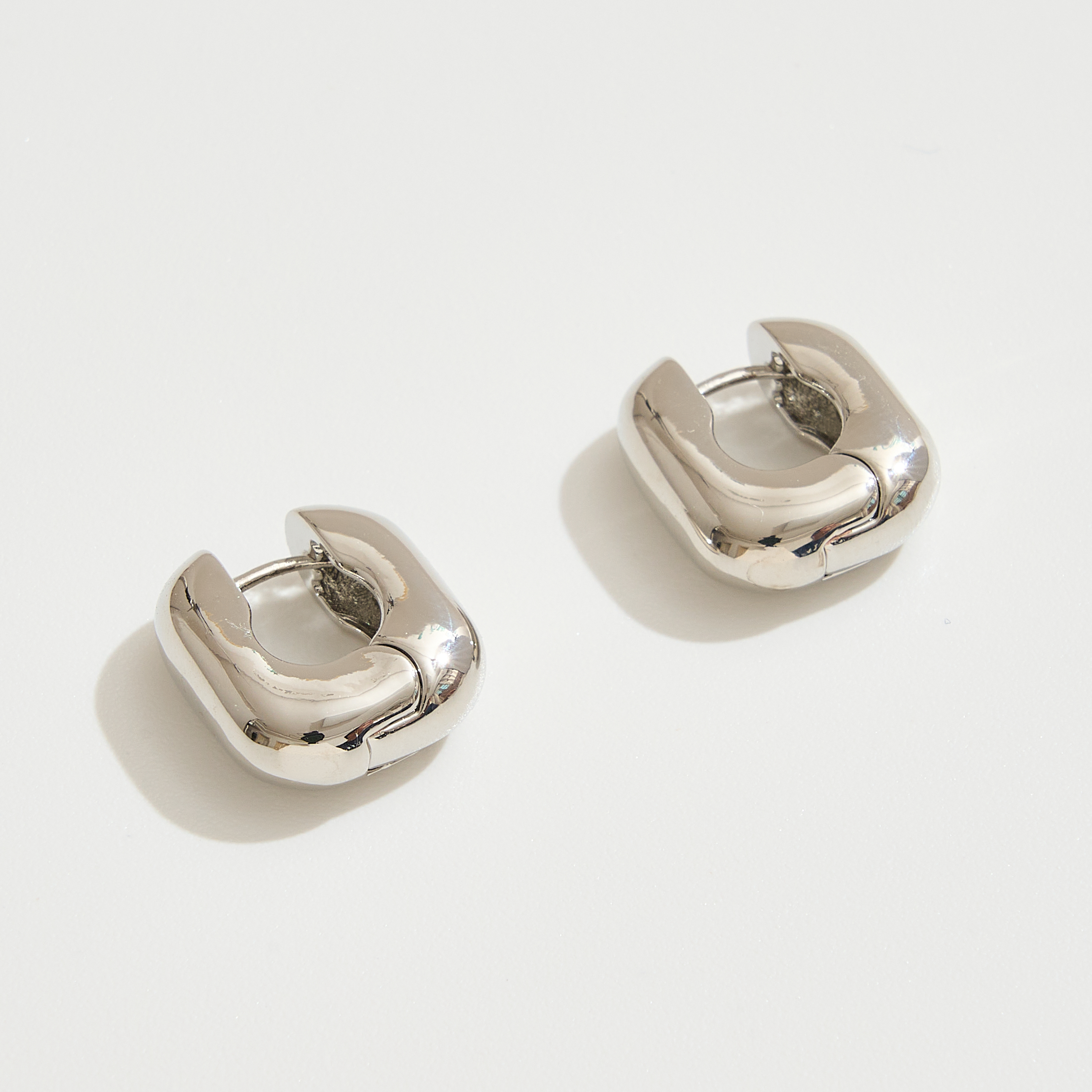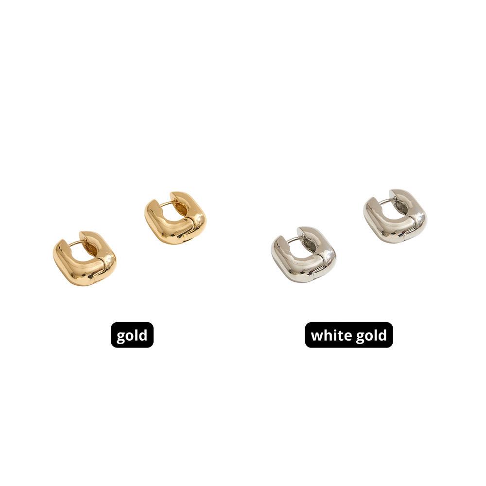 14K GOLD WHITE GOLD DIPPED POLISHED SQUARE HUGGIE HOOP EARRING