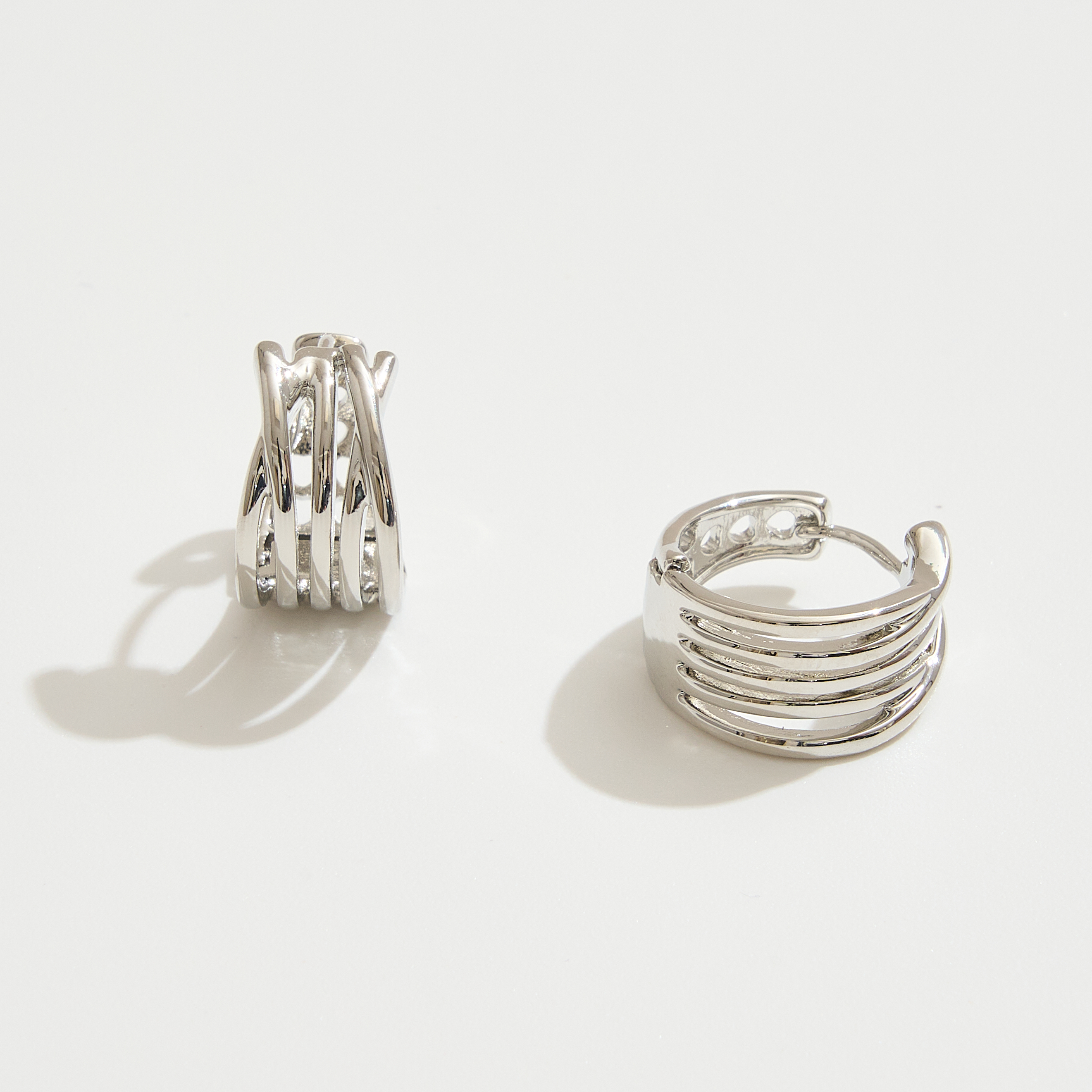14K GOLD WHITE GOLD DIPPED LAYERED HUGGIE HOOP EARRING (12 UNITS)