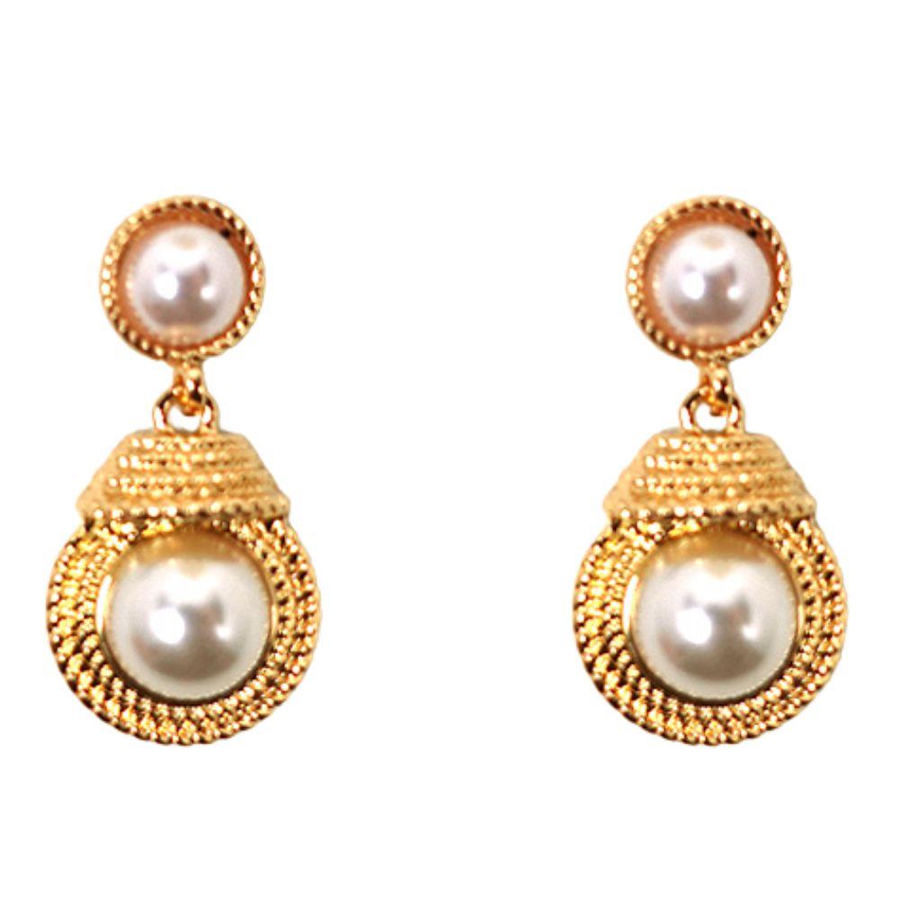 PEARL BEAD METAL DANGLE EARRING
