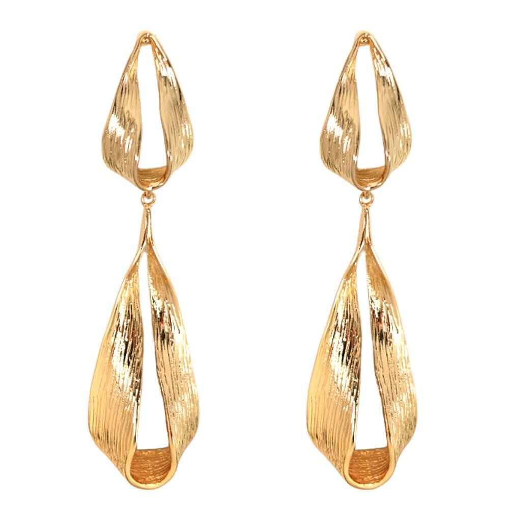LINED BENT TEARDROP DANGLE EARRING