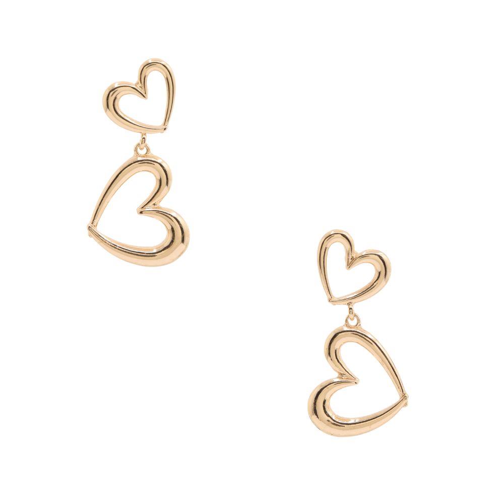 DOUBLE HEART METAL DANGLE EARRING