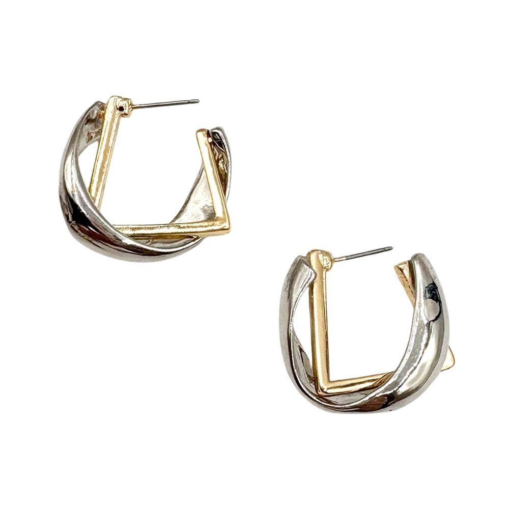 TEXTURED METAL TWO TONE TWIST HUGGIE EARRING