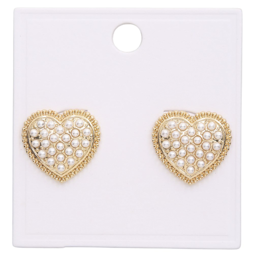 PEARL BEAD HEART STUD EARRING