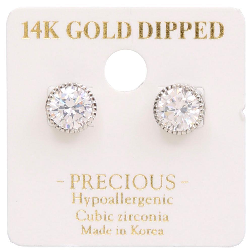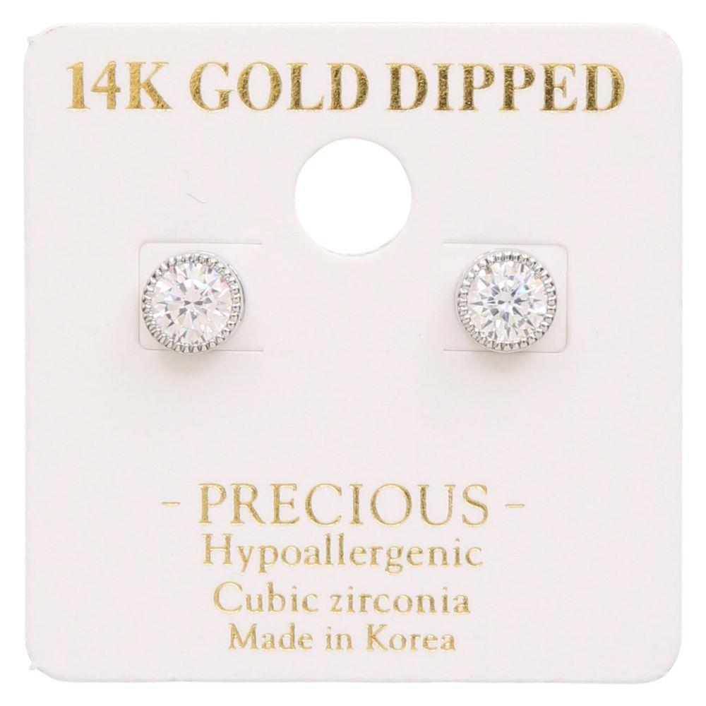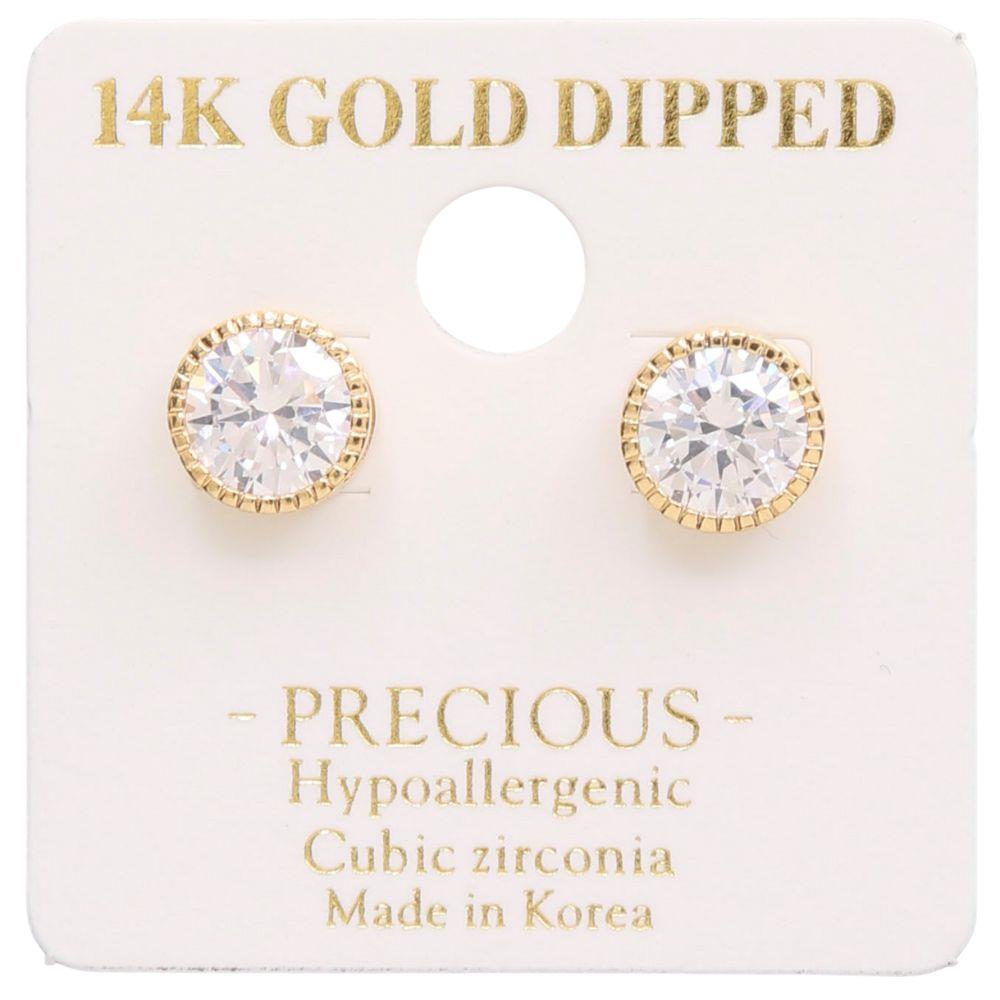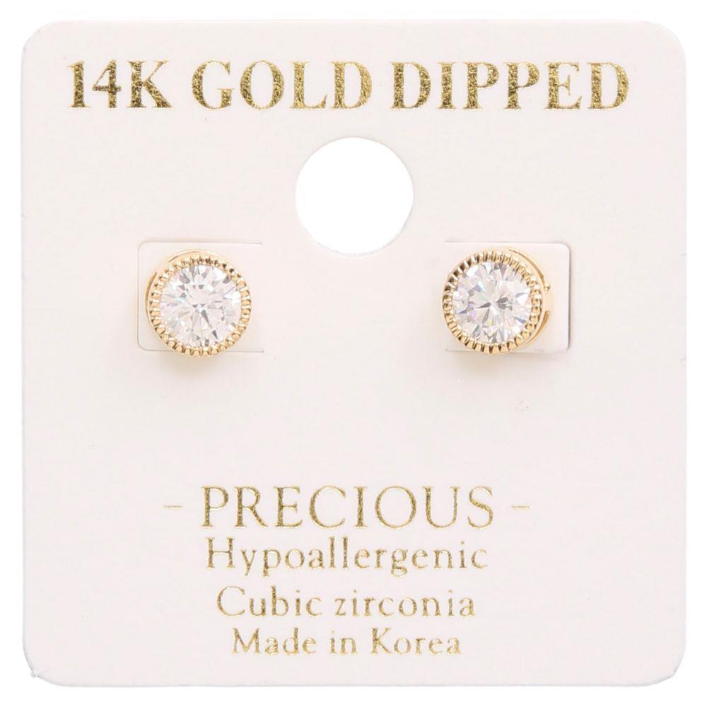 14K GOLD DIPPED ROUND CRYSTAL POST EARRING