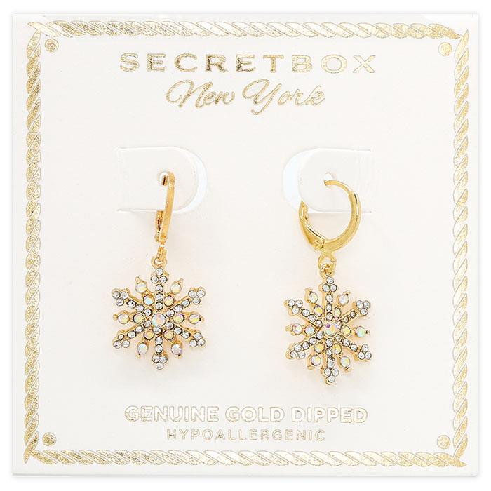 SECRET BOX GOLD DIPPED SNOWFLAKE HUGGIE EARRING