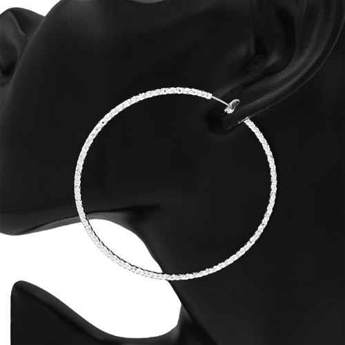 METAL LINE STUDDED STONE 60MM HOOP EARRING