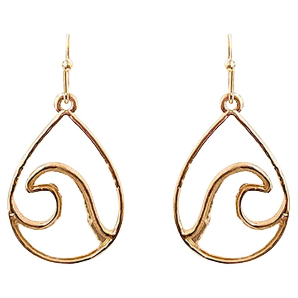 TEARDROP FLOWER PATTERN BRUSHED METAL DANGLE EARRING