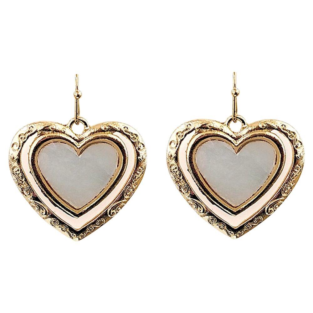 METAL MOTHER OF PEARL HEART DANGLE EARRING