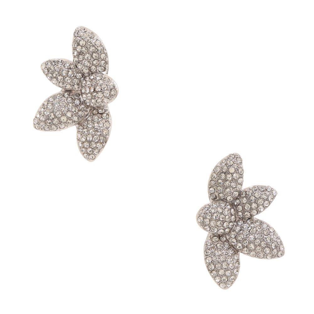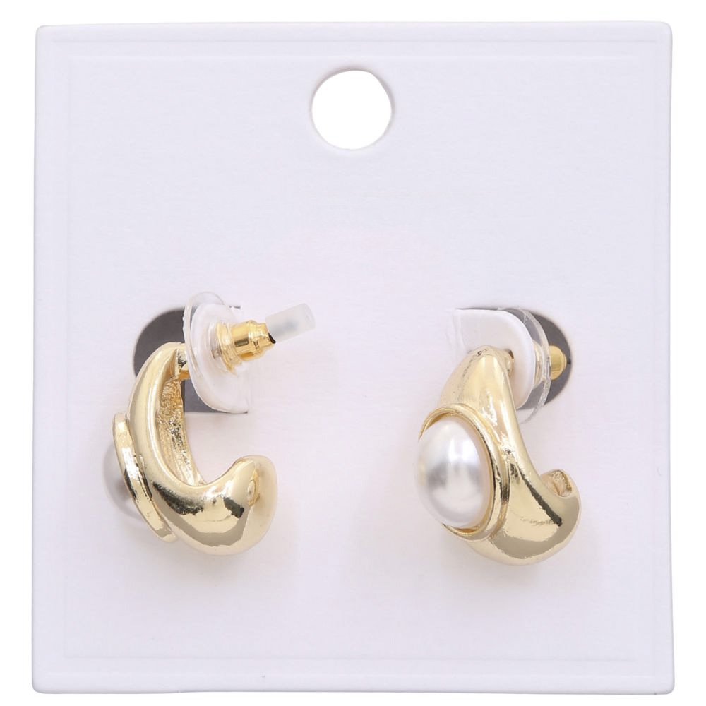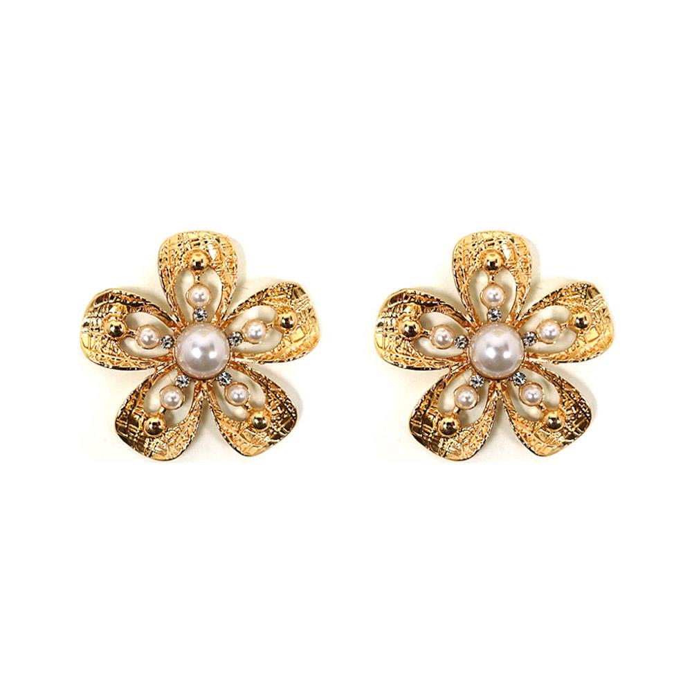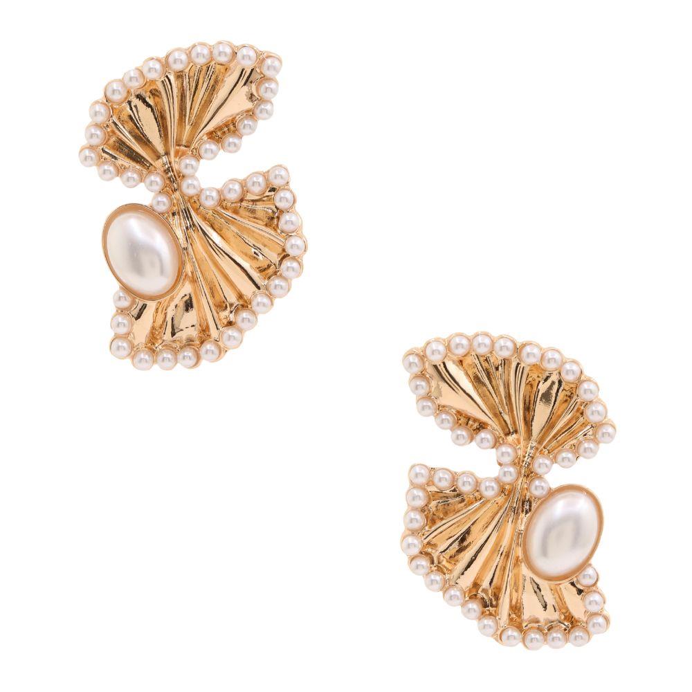 PEARL BEAD RHINESTONE RUFFLE METAL EARRING