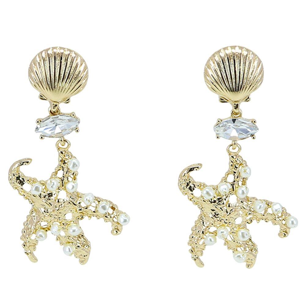 METAL STARFISH CRYSTAL DANGLE EARRING