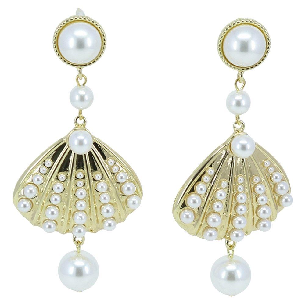 ROUND LION HEAD PEARL BEAD LINK DANGLE EARRING