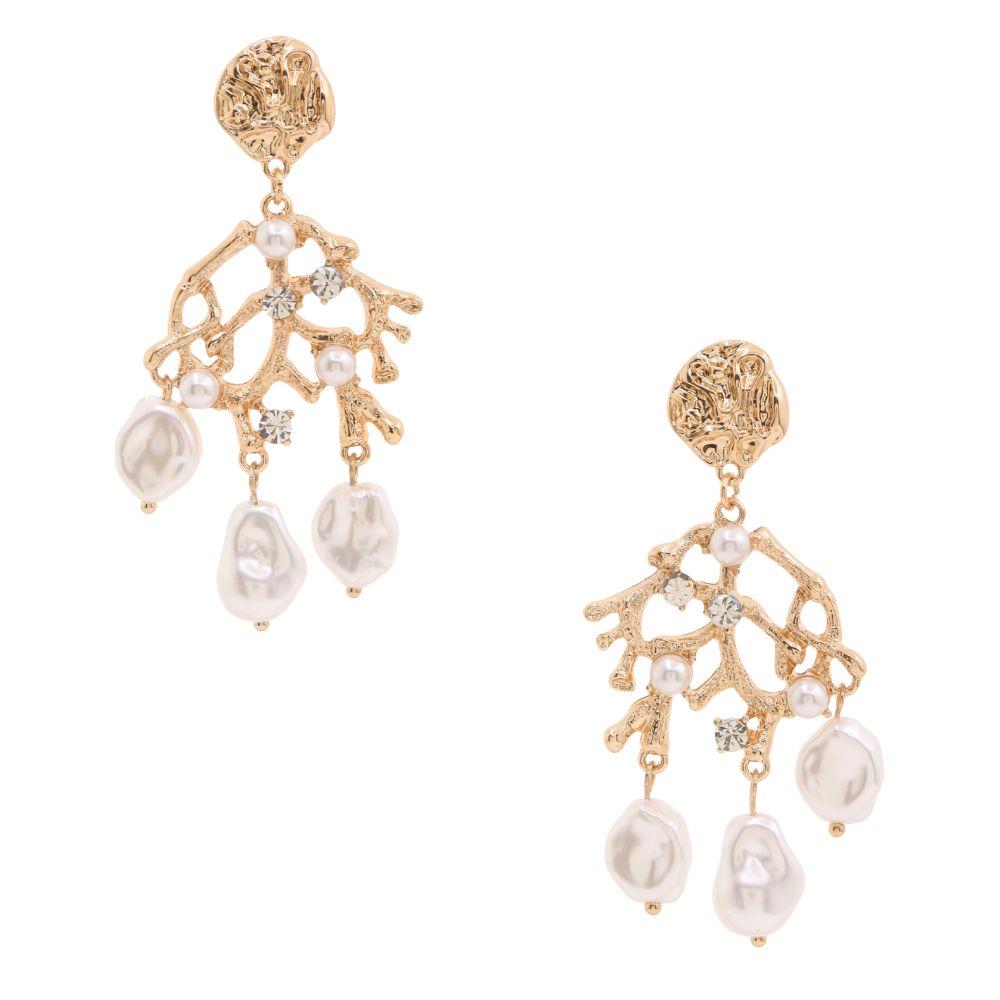PEARL BEAD CORAL METAL DANGLE EARRING
