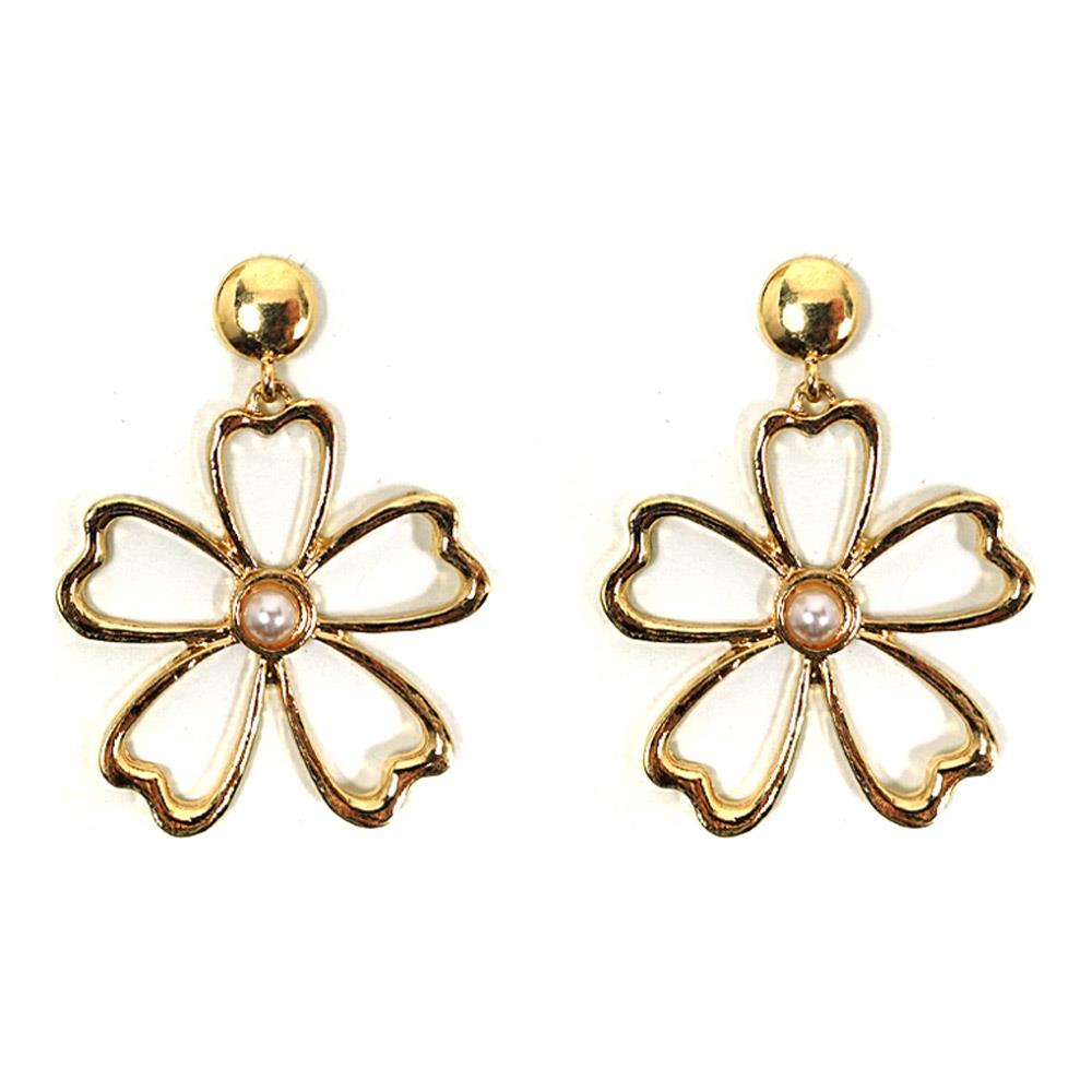 PEARL BEAD PETAL METAL DANGLE EARRING