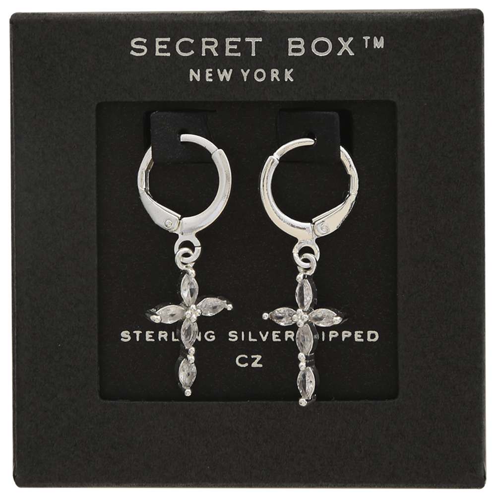 SECRET BOX 14K GOLD DIPPED CROSS EARRING