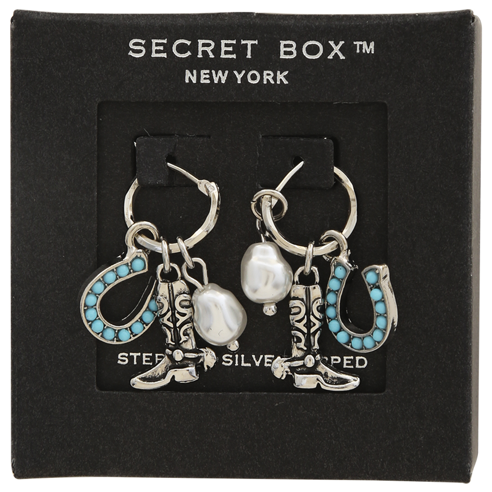 SECRET BOX GOLD DIPPED WESTERN CHARMED HOOP EARRING