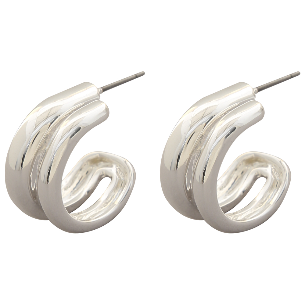 TRIPLE ROW CURVE METAL EARRING