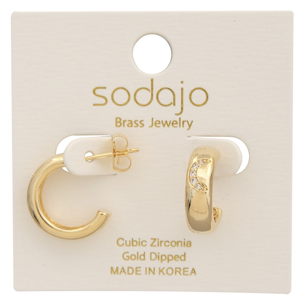 SODAJO CRESCENT HOOP CZ GOLD DIPPED EARRING