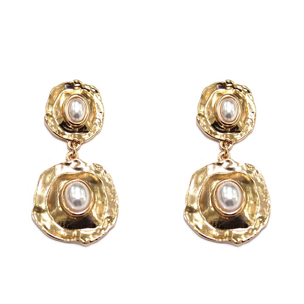 METAL DOUBLE DISC PEARL DROP EARRING