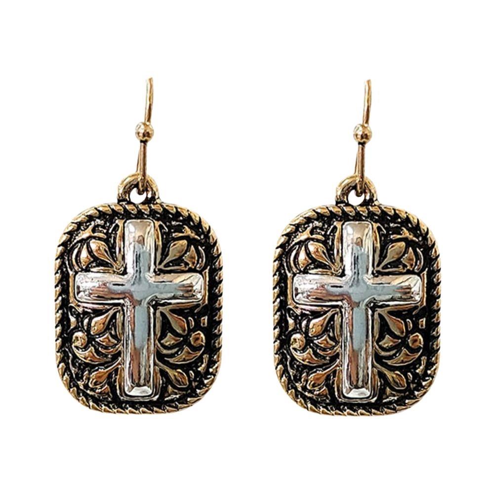WESTERN TRI TONE METAL FLOWER DANGLE EARRING