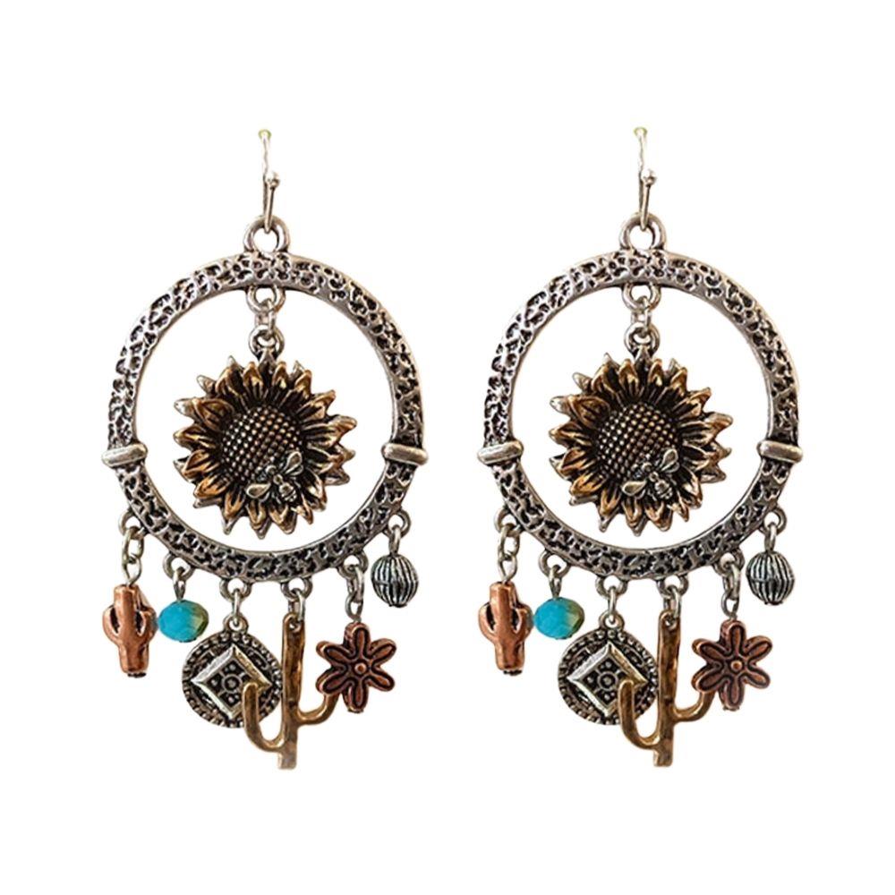 WESTERN STYLE MULTI CHARM DANGLE EARRING