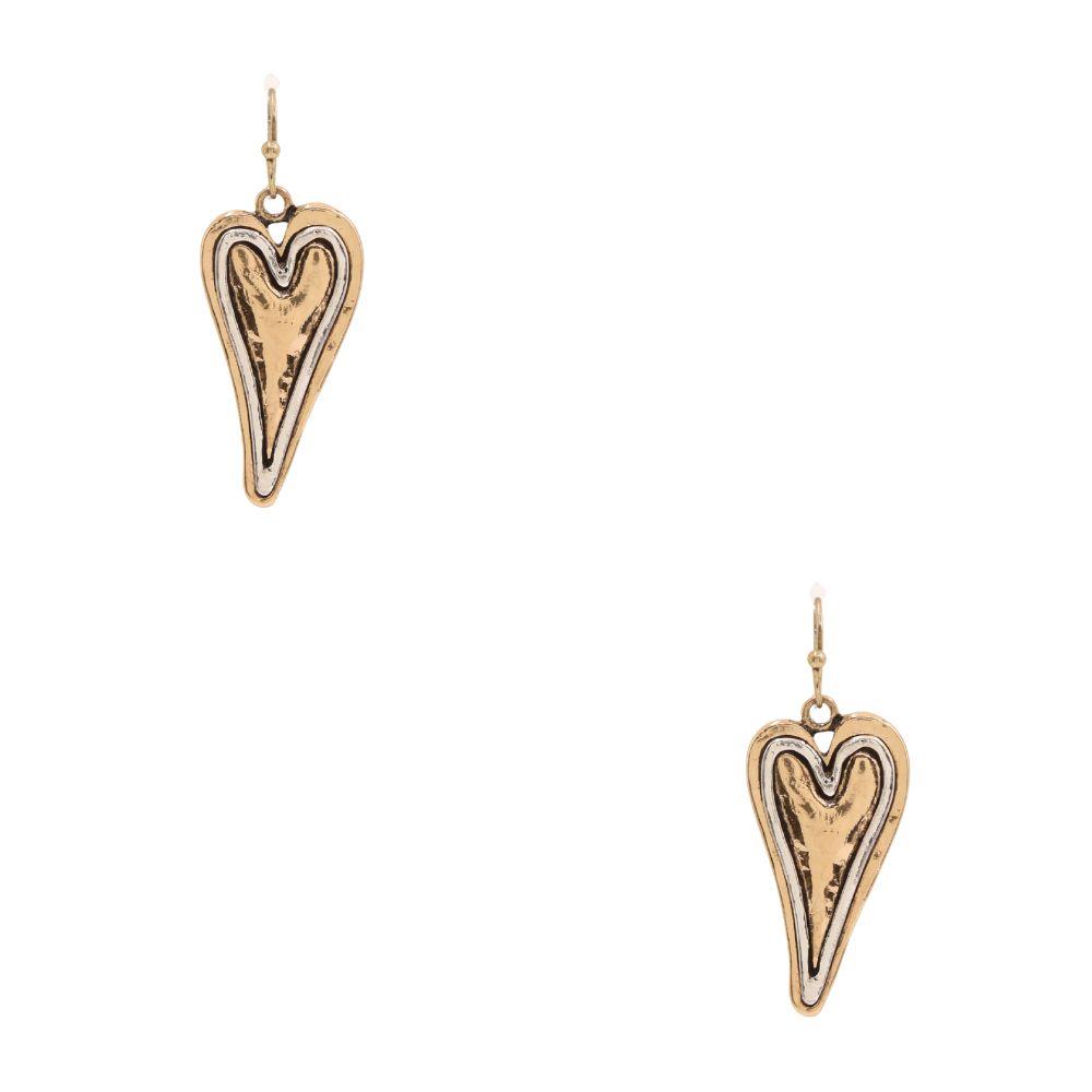 WESTERN TWO TONE METAL HEART DANGLE EARRING