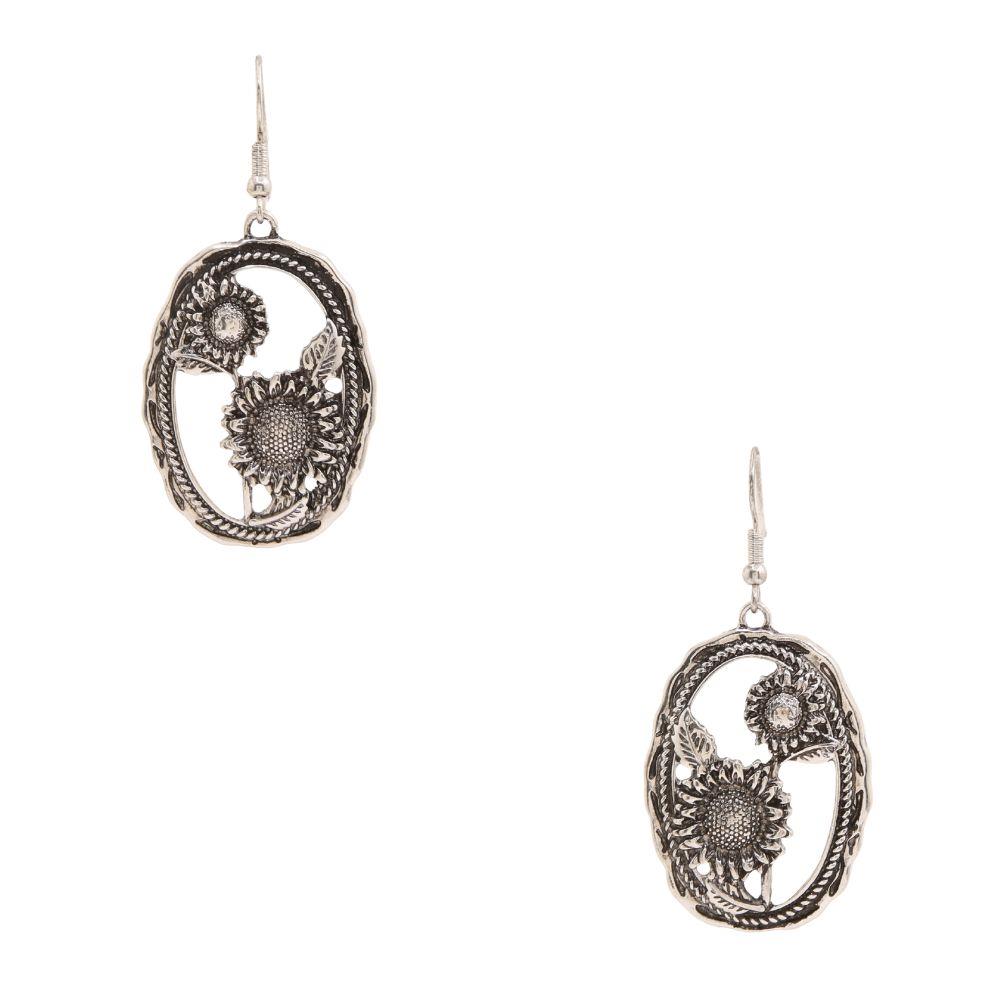 DOUBLE FLOWER OVAL METAL DANGLE EARRING
