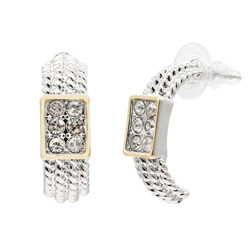 14K GOLD PLATED CLEAR CZ TWO TONE EARRING