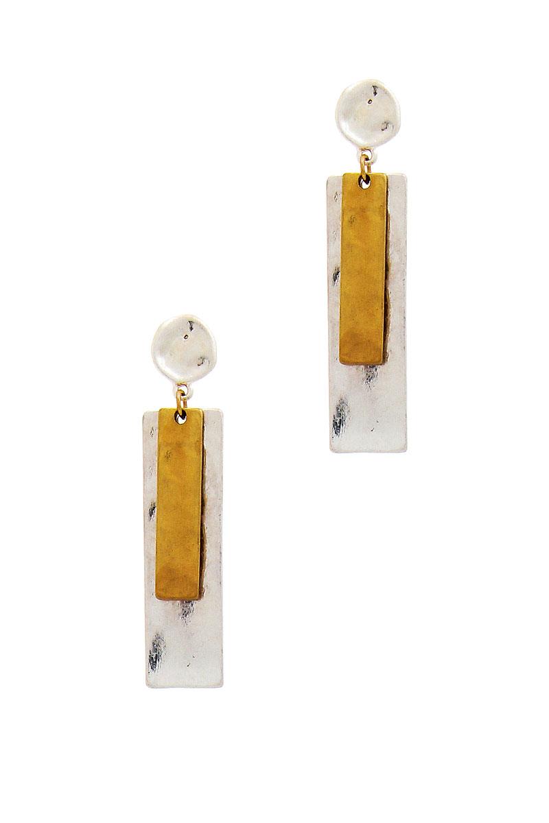 DOUBLE METAL RECTAGULAR SHAPE POST DROP EARRING