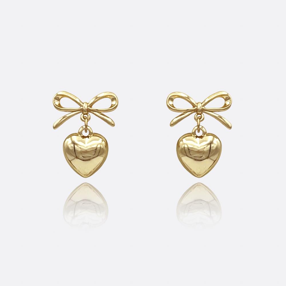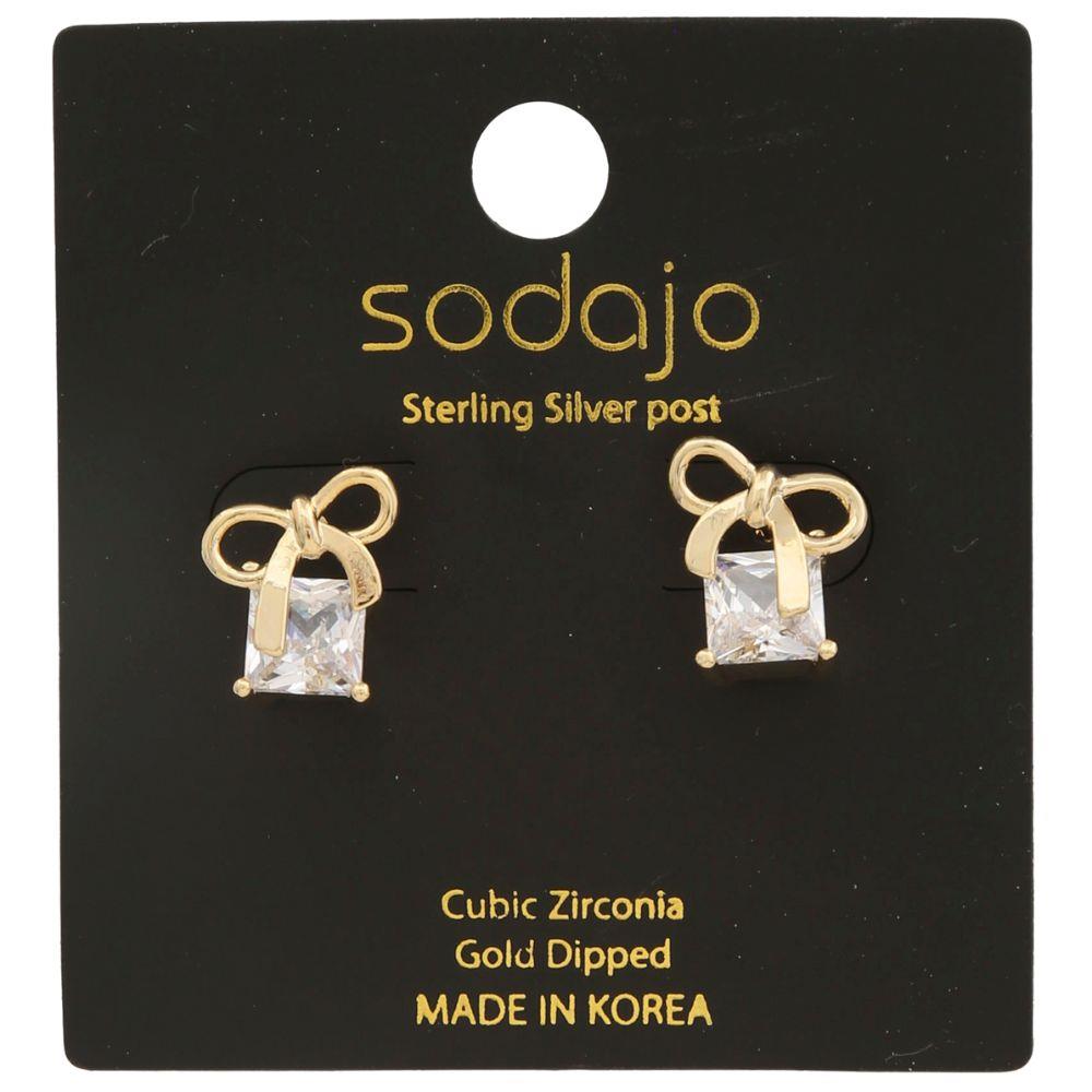 SODAJO DAINTY RIBBON BOW CUBE CZ GOLD DIPPED EARRING