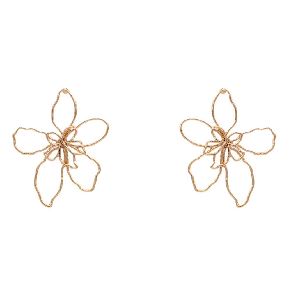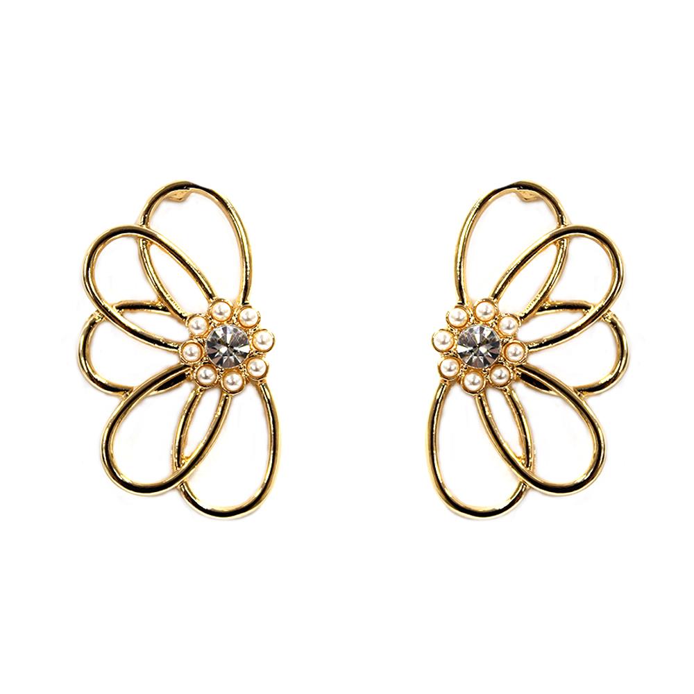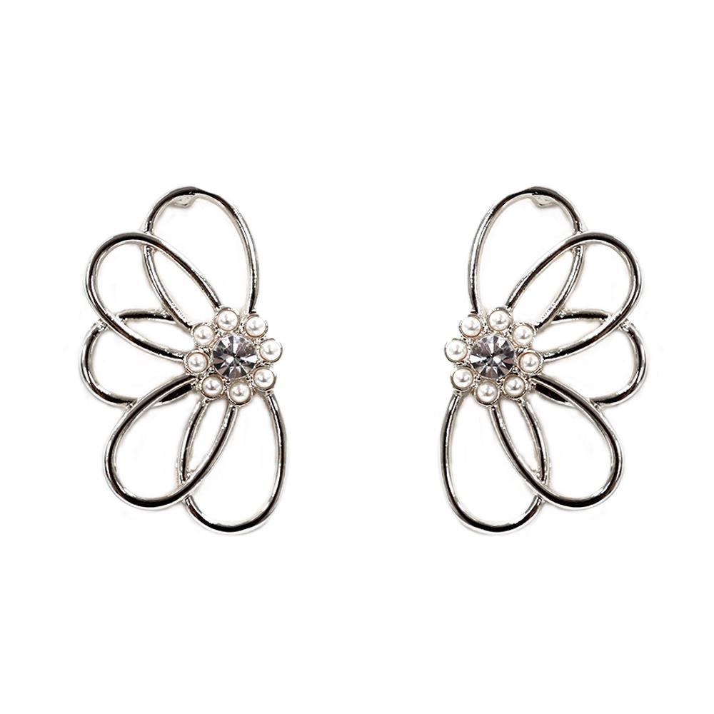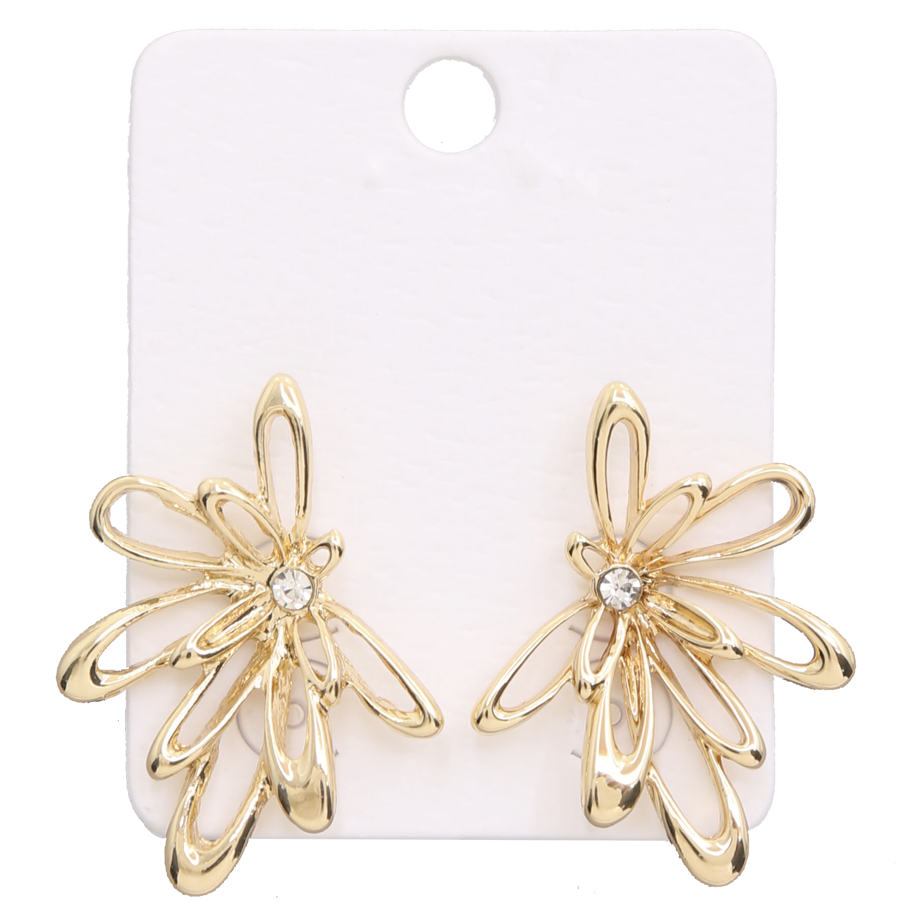 METAL FLOWER OUTLINE CRYSTAL STUD EARRING
