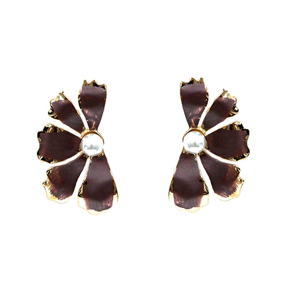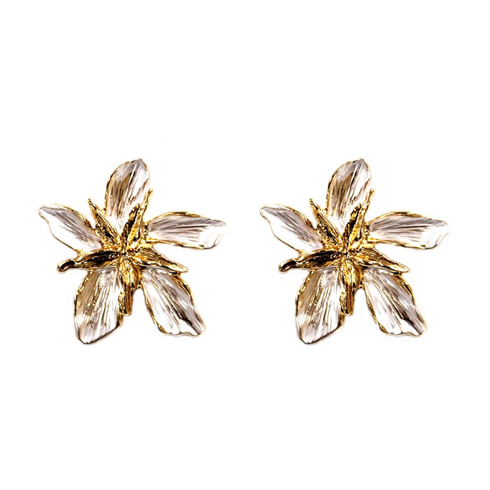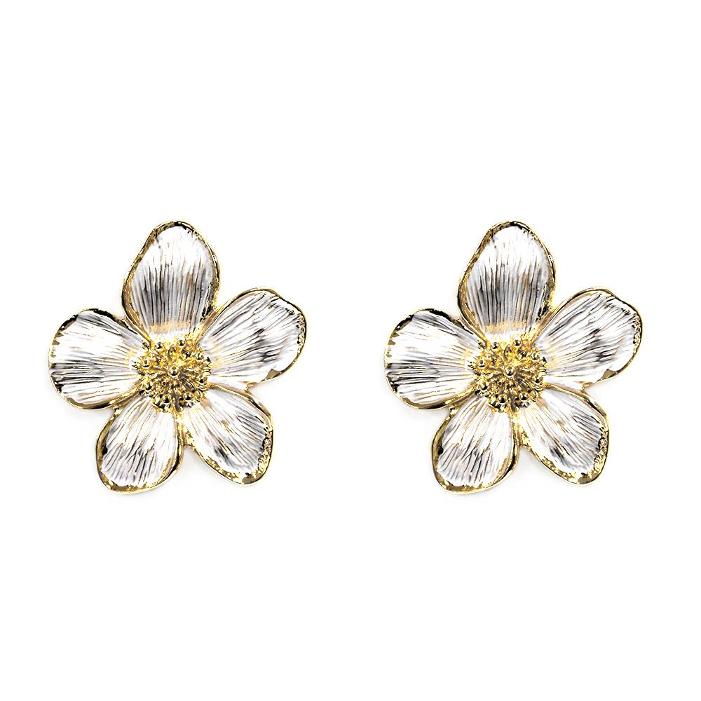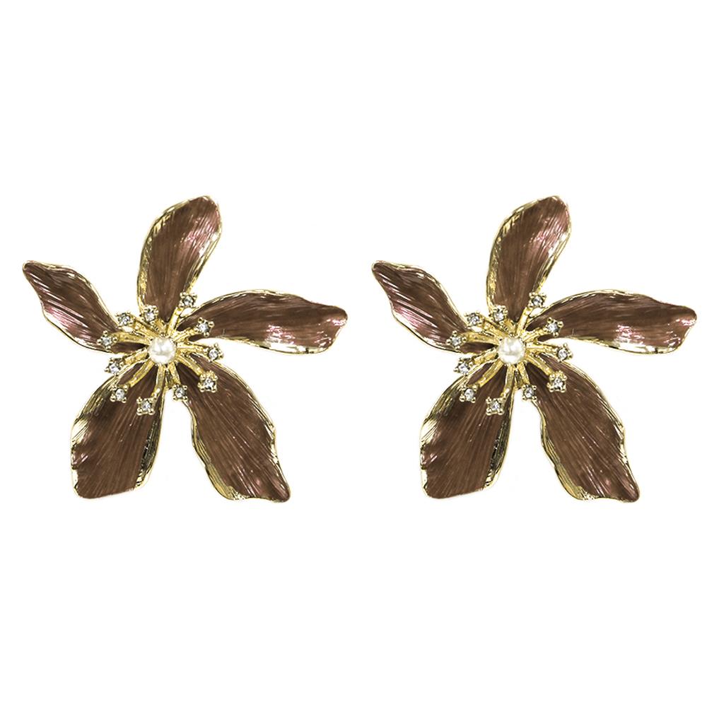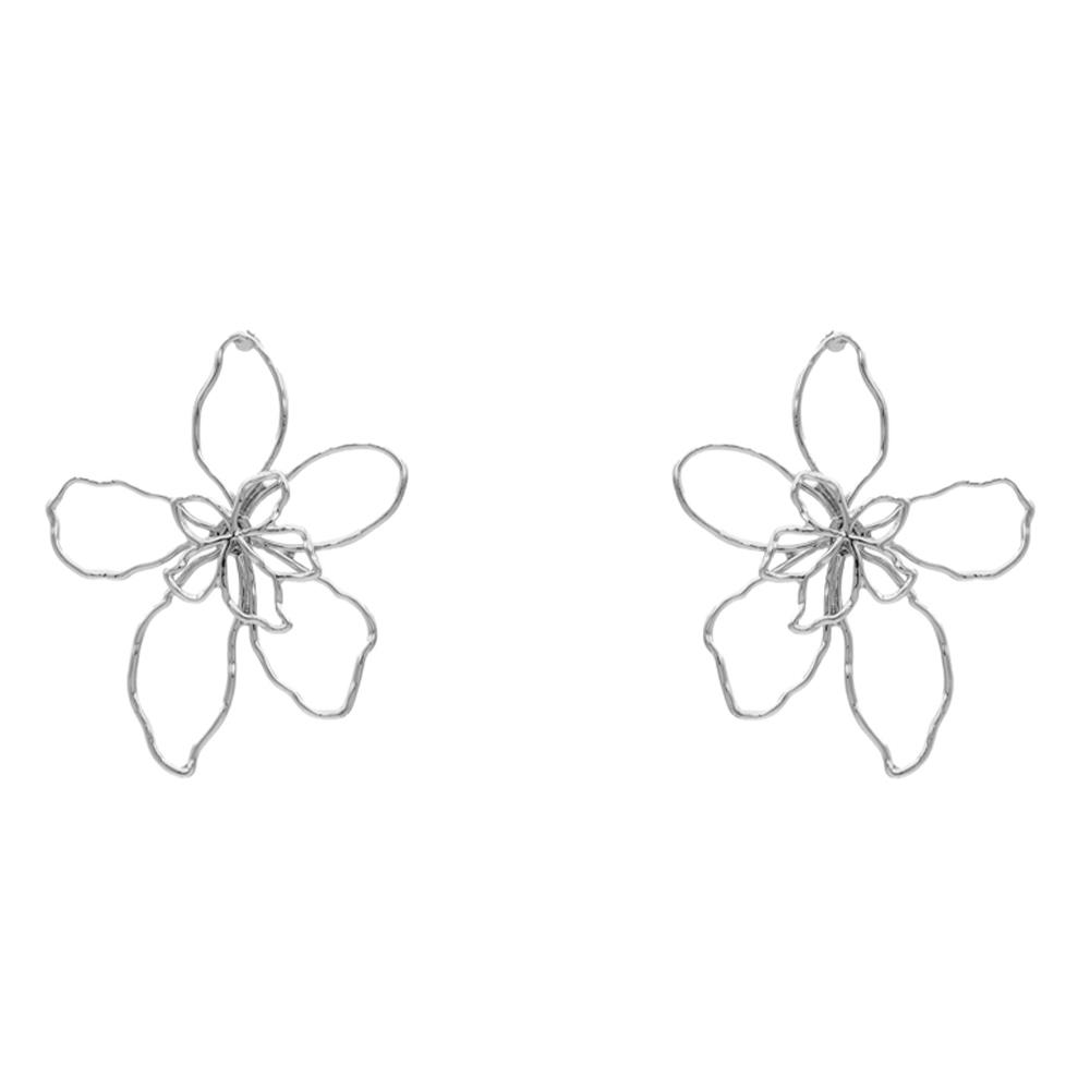 METAL FLOWER OUTLINE CRYSTAL STUD EARRING