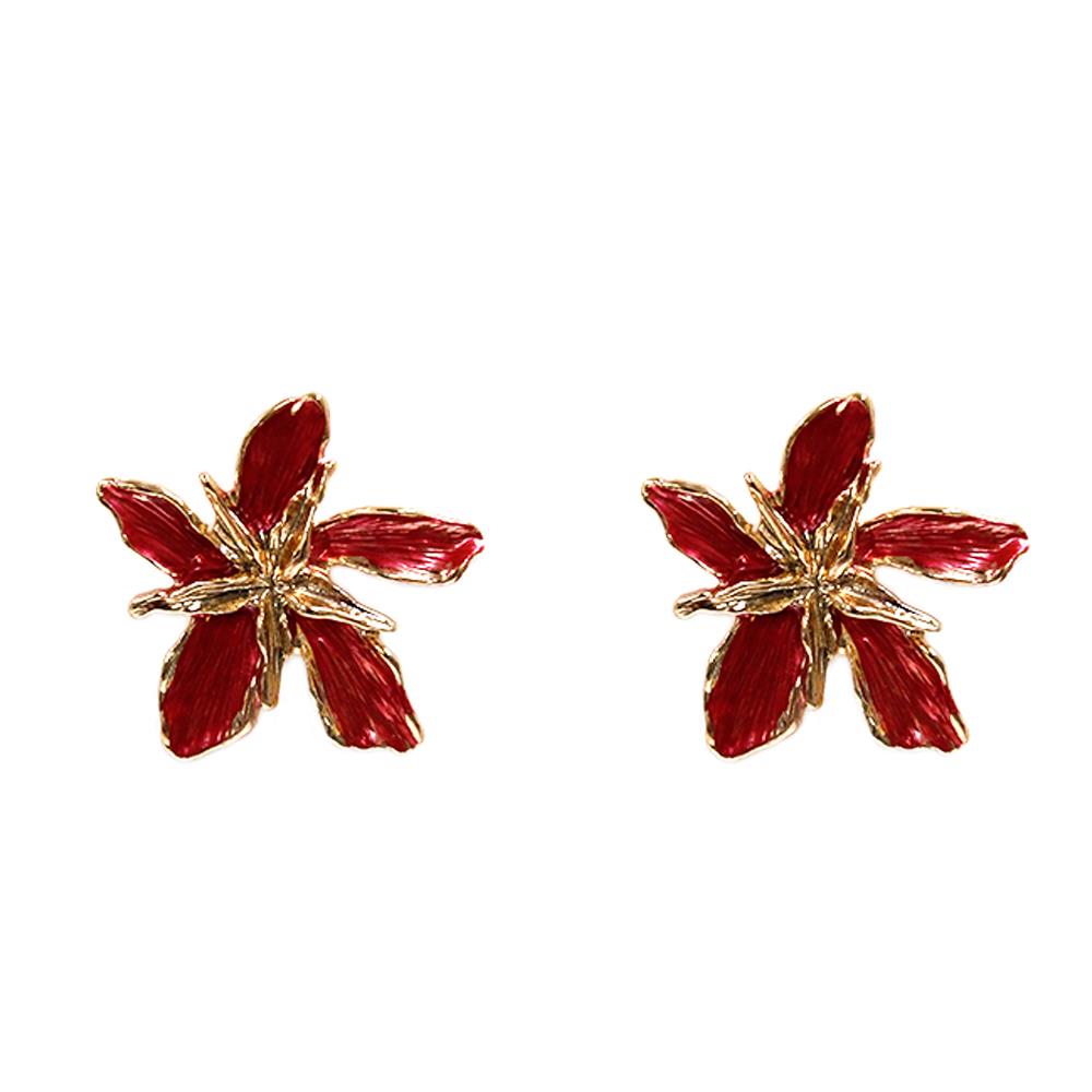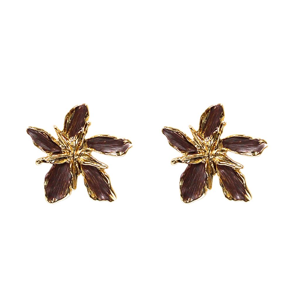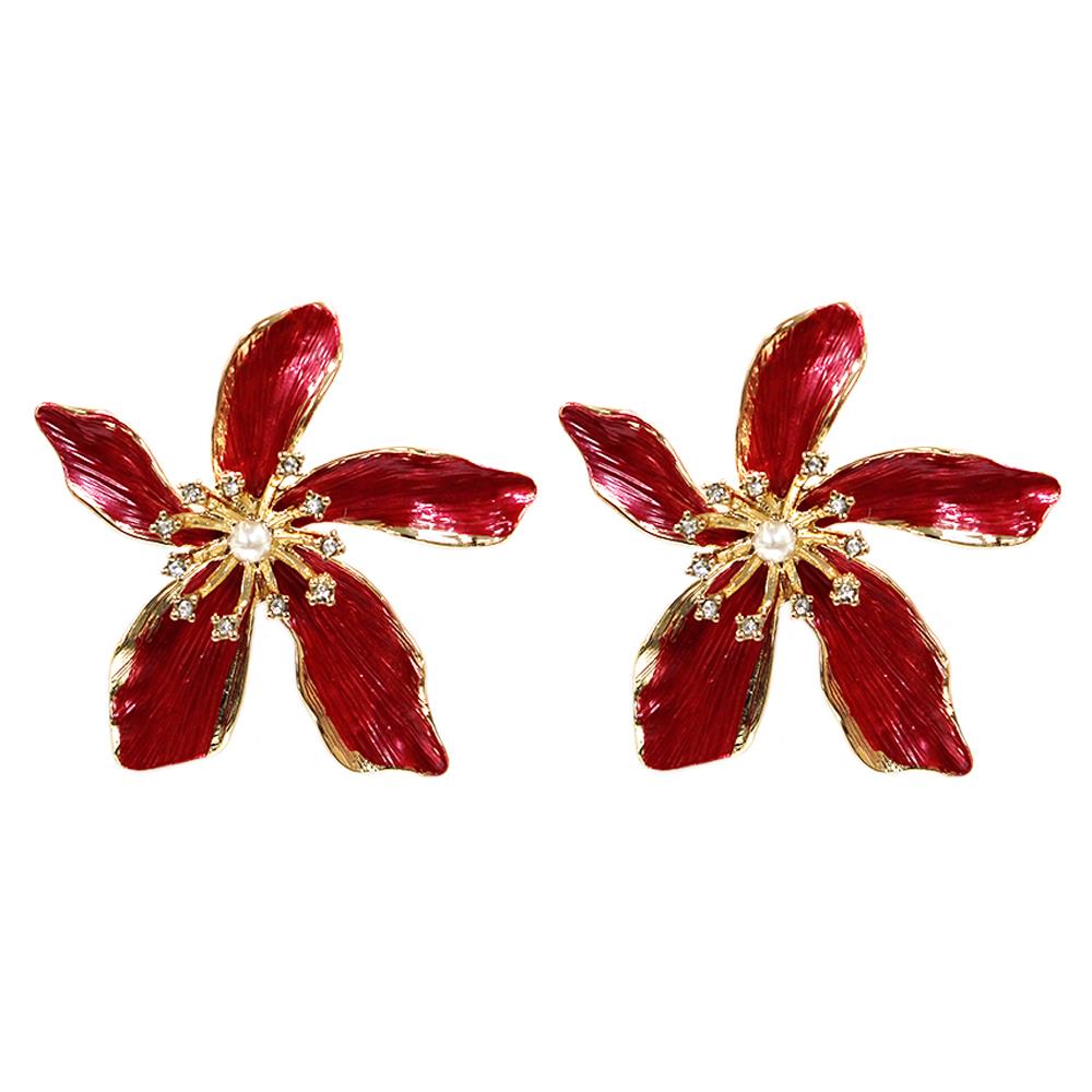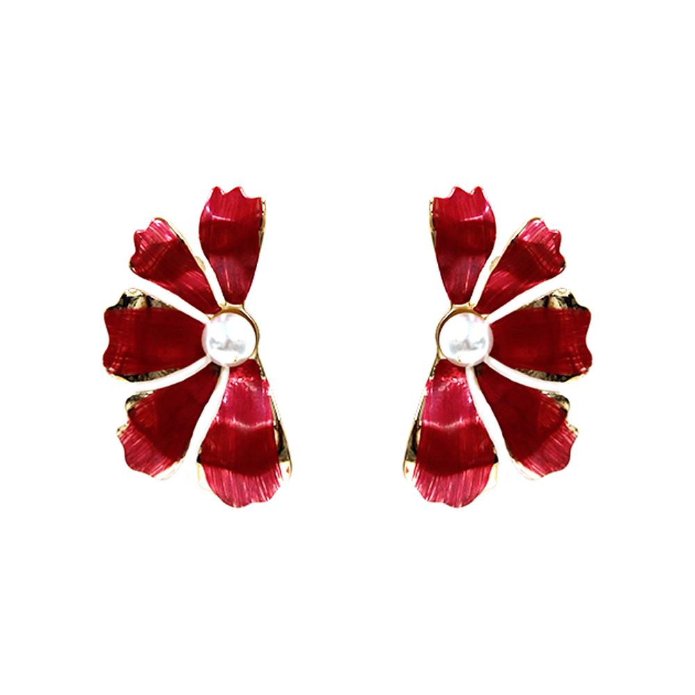 METAL FLOWER OUTLINE CRYSTAL STUD EARRING