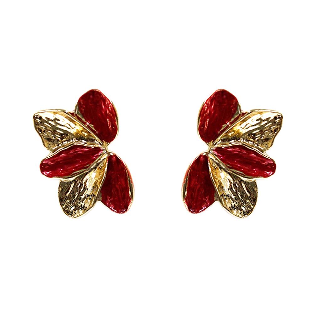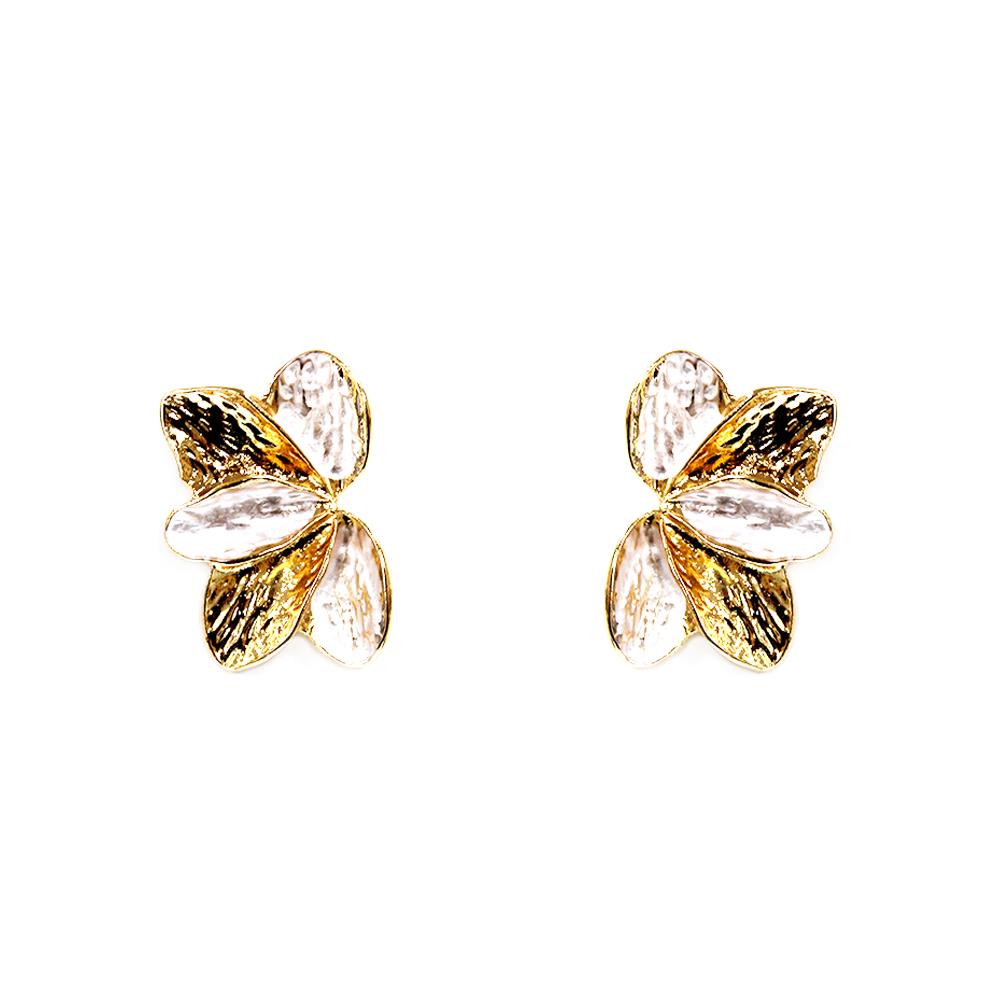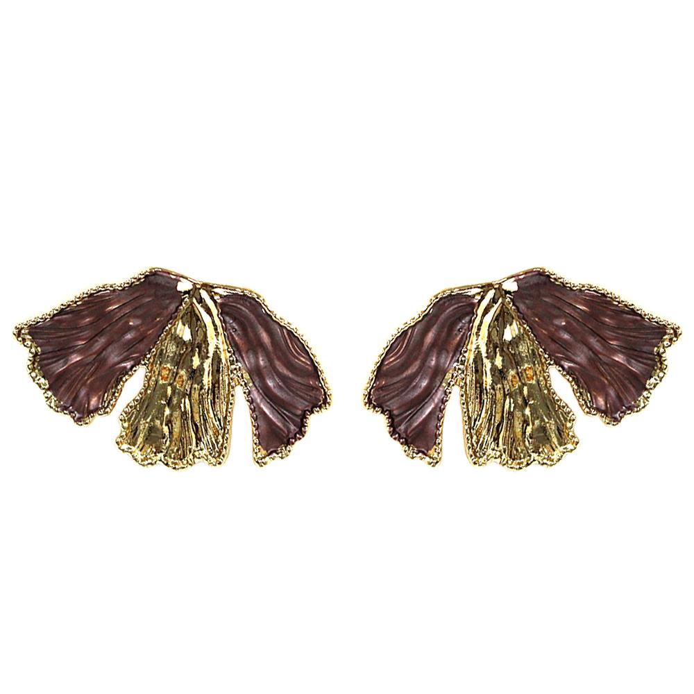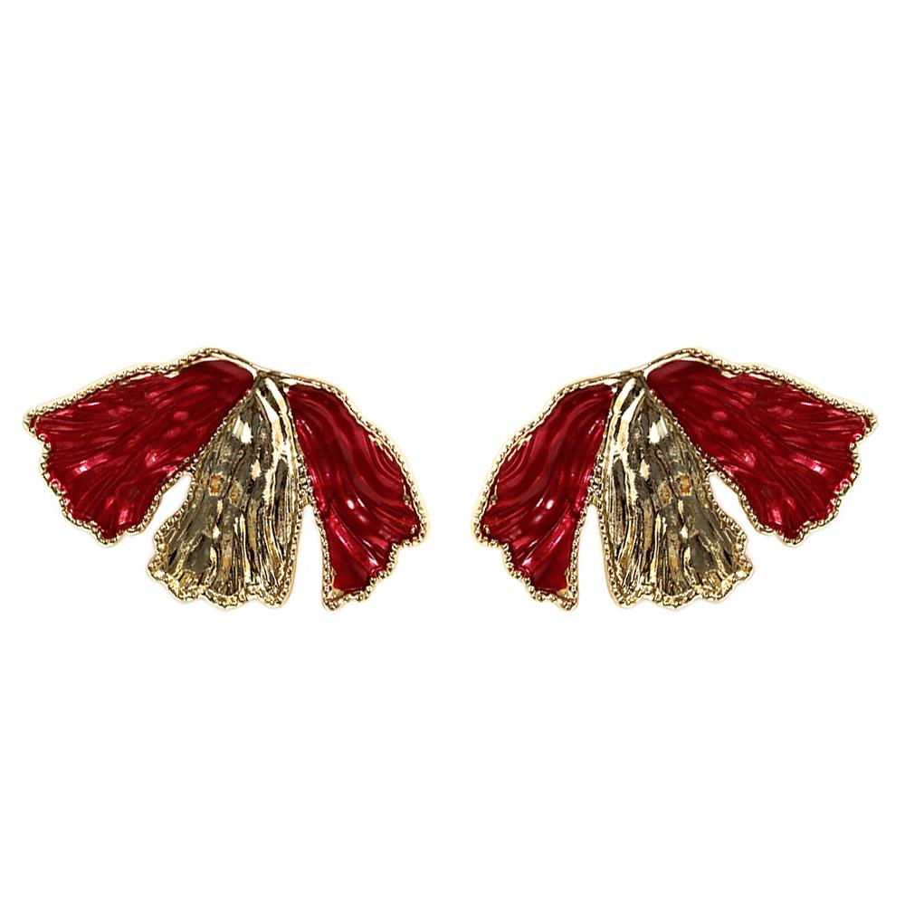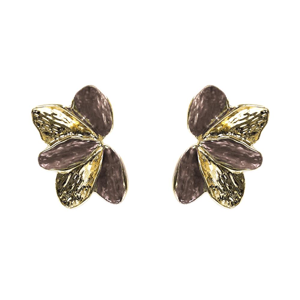 TEXTURED METAL FOLDED LEAF POST EARRINGS