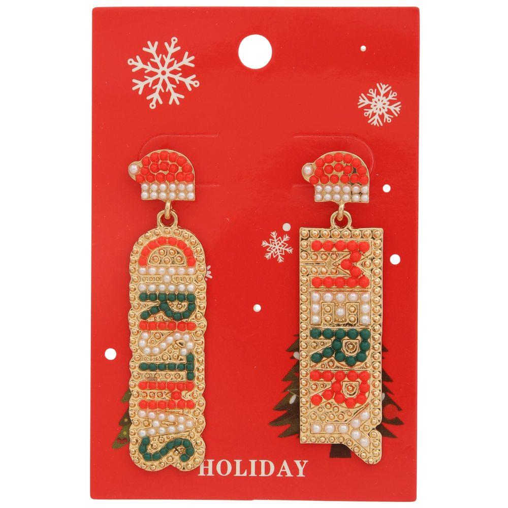 MERRY CHRISTMAS METAL BEADED DANGLE EARRING