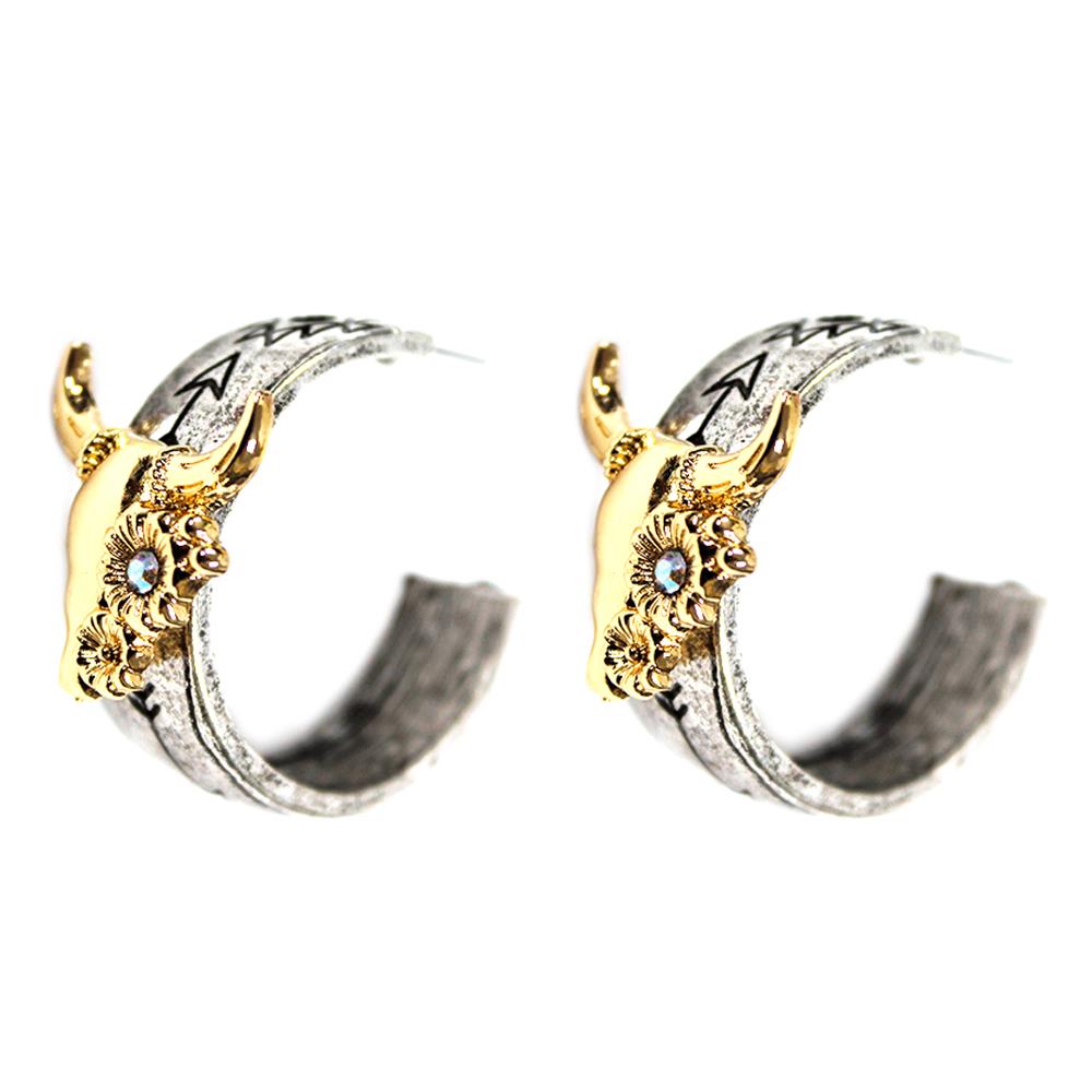 WESTERN HORSE HEAD CRYSTAL HOOP EARRING