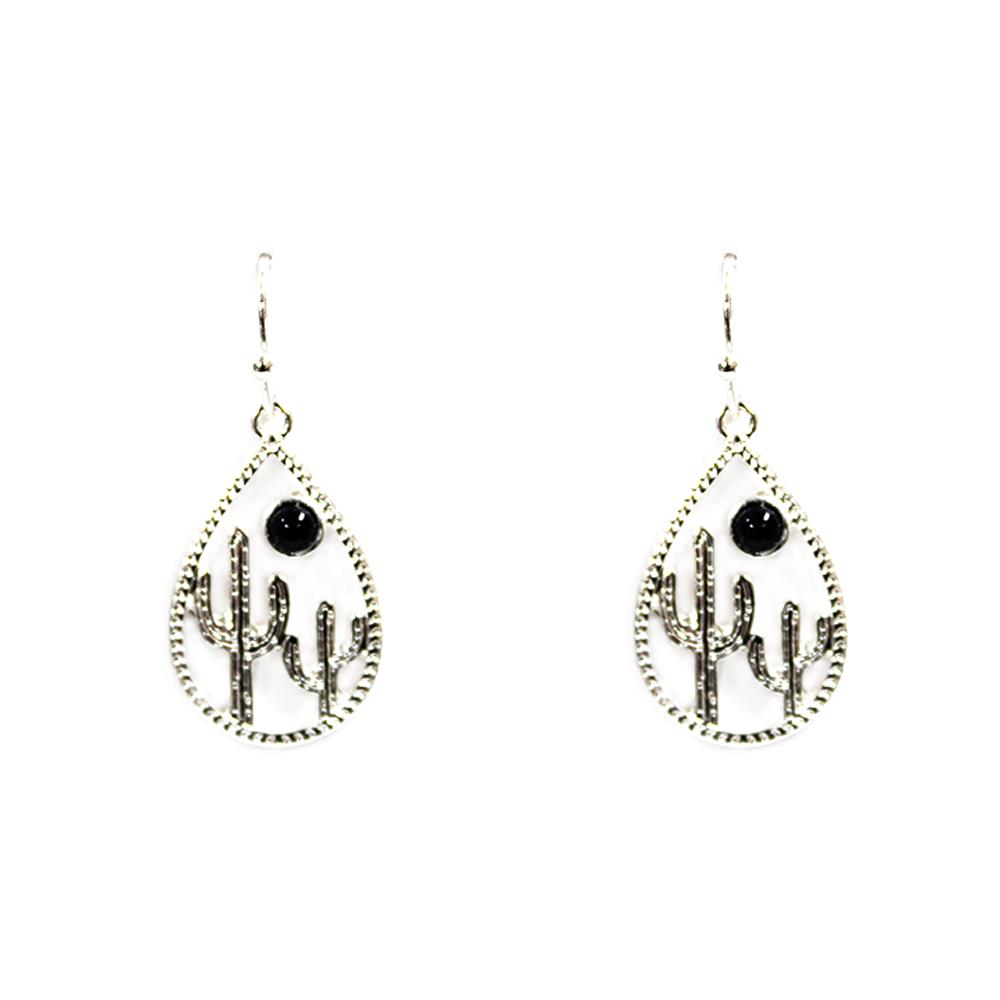 WESTERN CACTUS TURQUOISE TEARDROP DANGLE EARRING