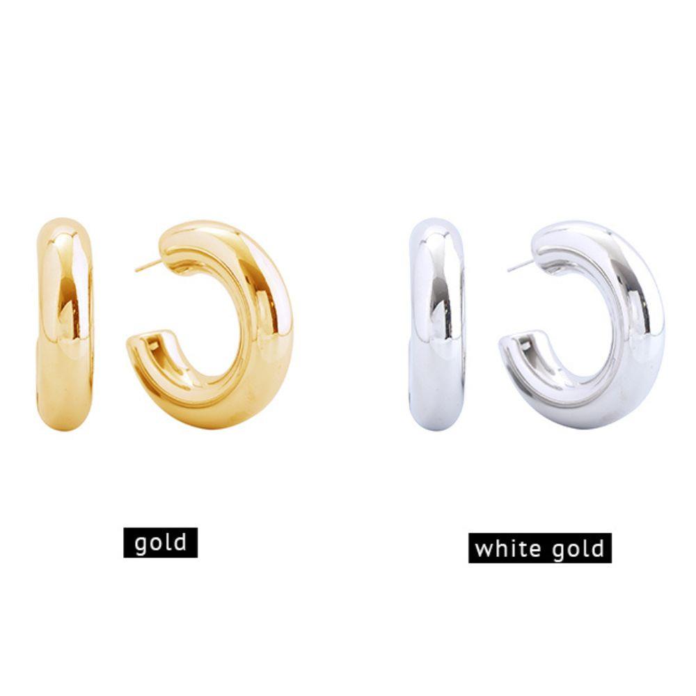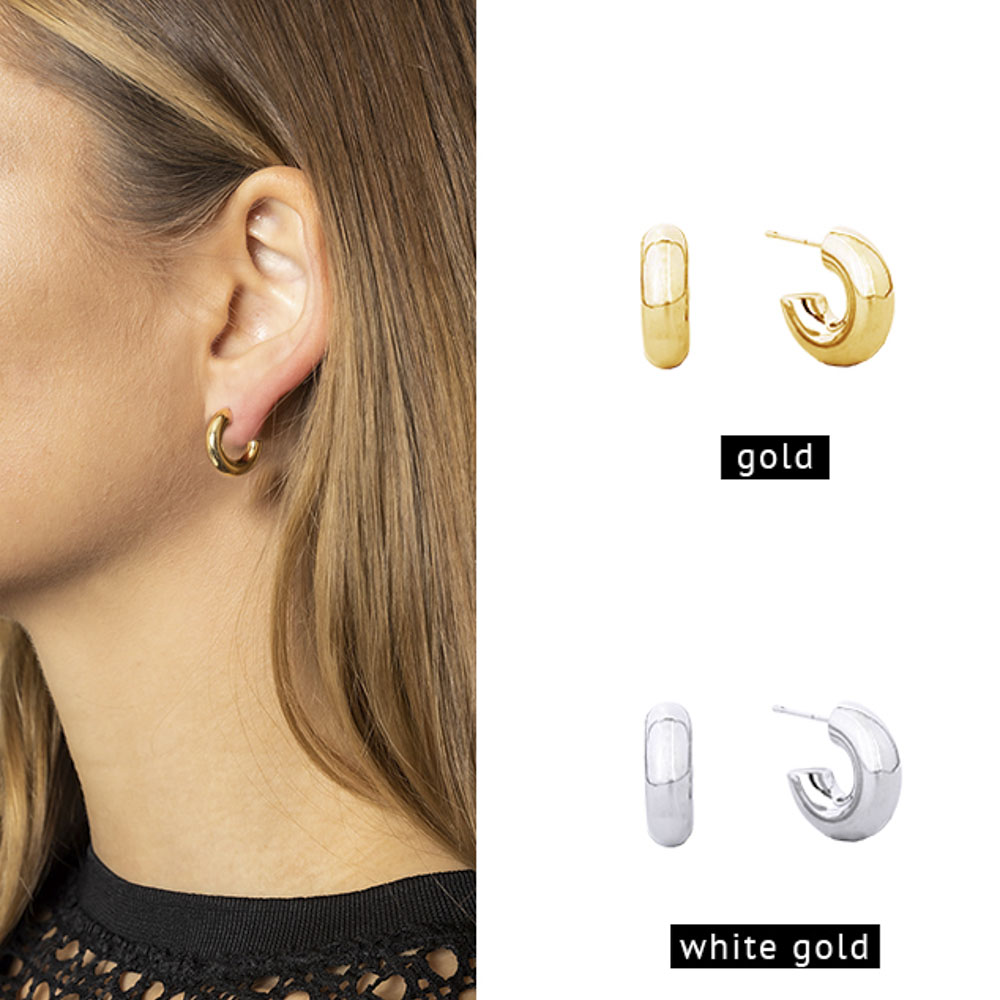 14K GOLD/WHITE GOLD DIPPED CHUNKY CURVE HOOP EARRINGS