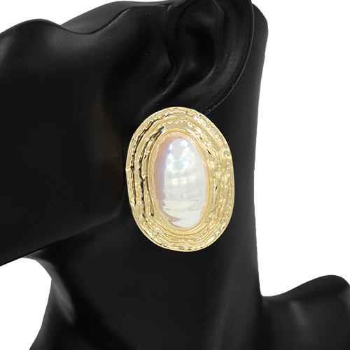 RESIN PEARL METAL OVAL DROP EARRING