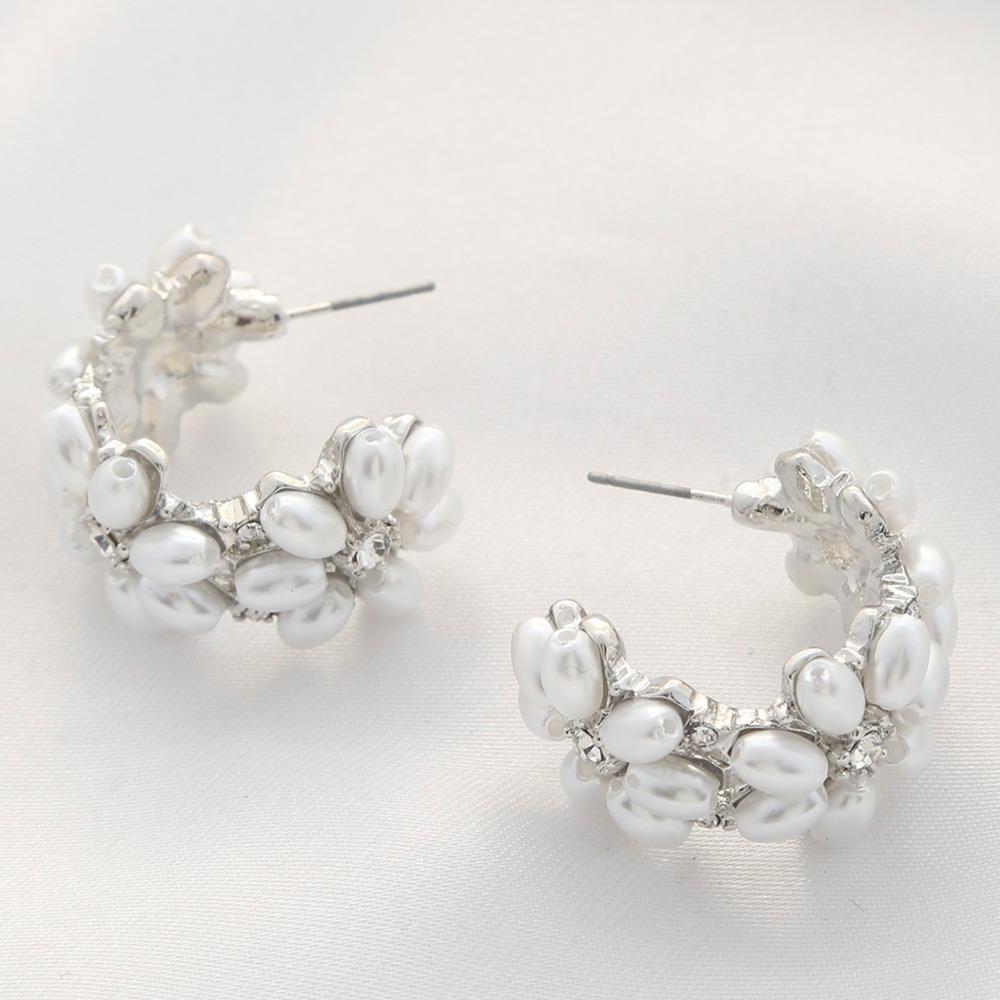 FAUX PEARL CLUSTER FRAME STUD EARRING