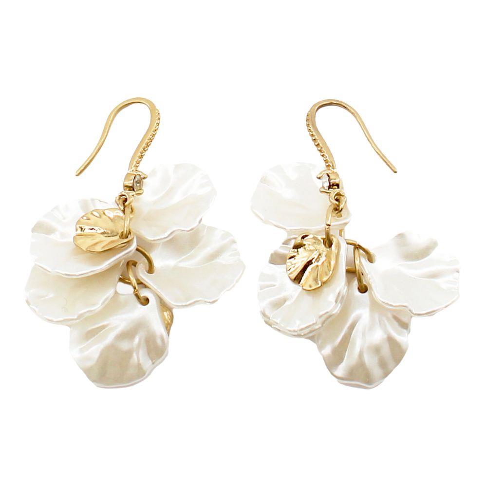 PEARL BEAD PETAL METAL DANGLE EARRING