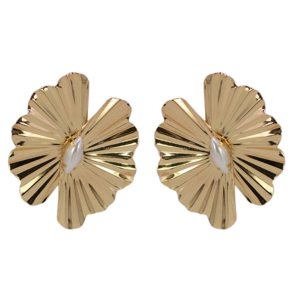 SODAJO PEARL BEAD METAL FLOWER GOLD DIPPED EARRING