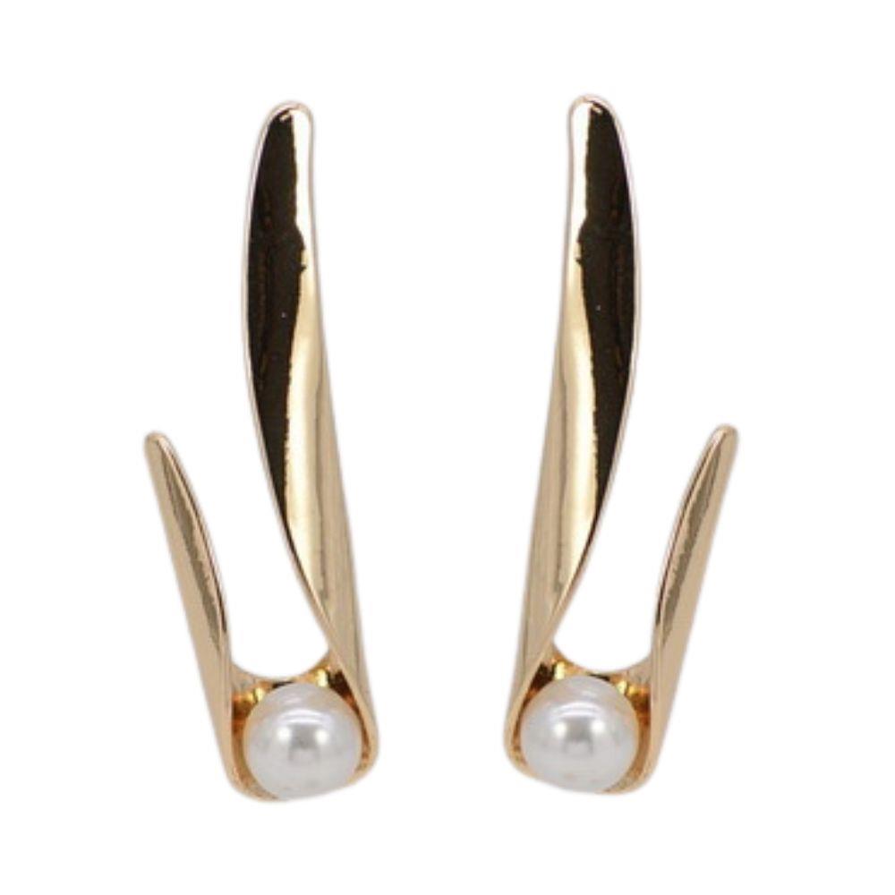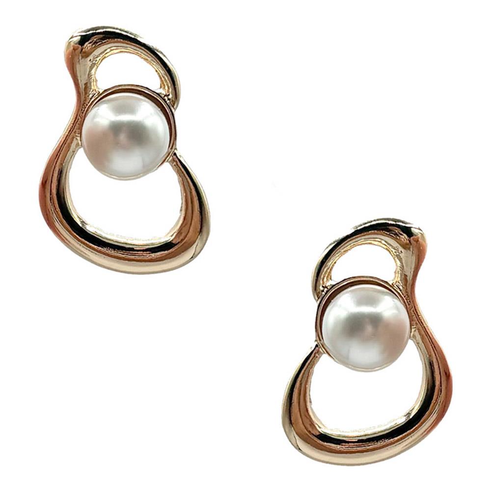 SODAJO ROUND PEARL BEAD TWISTED EDGE GOLD DIPPED EARRING