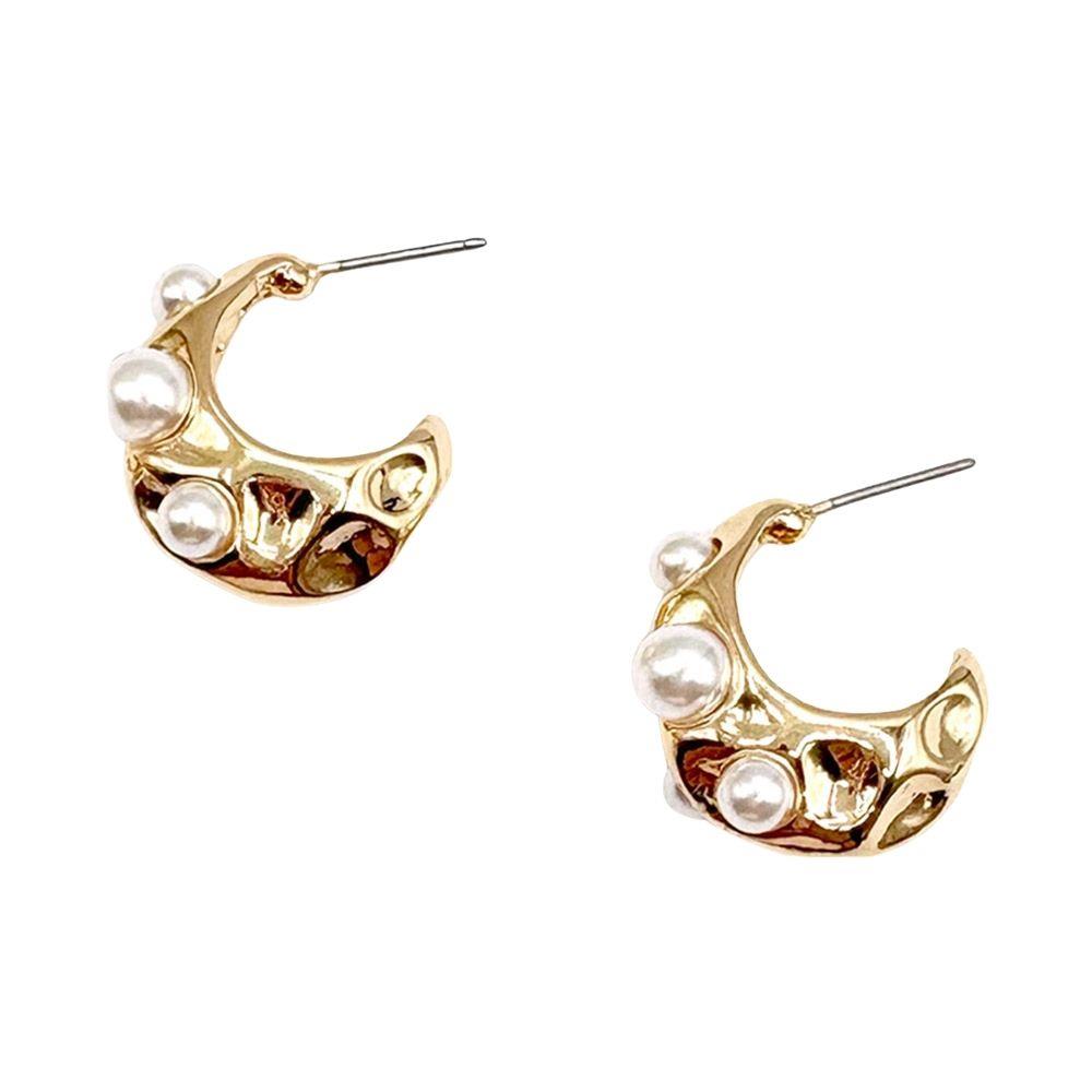 SODAJO PEARL BEAD METAL TWISTED HOOP GOLD DIPPED EARRING