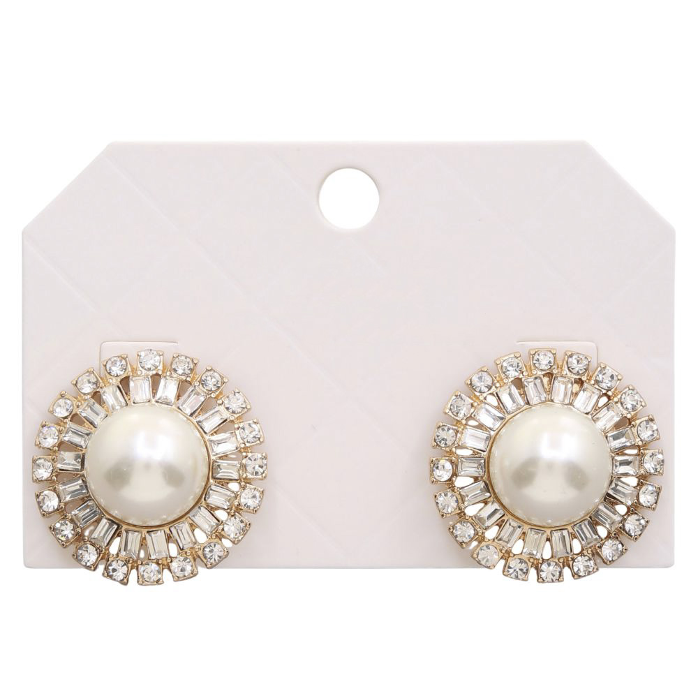 PEARL BEAD RHINESTONE RUFFLE METAL EARRING
