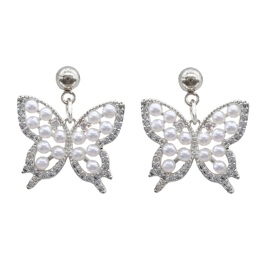 PEARL BUTTERFLY STAINLESS STEEL DANGLE EARRING