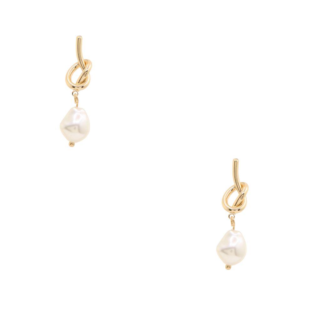 SODAJO PEARL BEAD SEASHELL CHARM GOLD DIPPED DANGLE EARRING